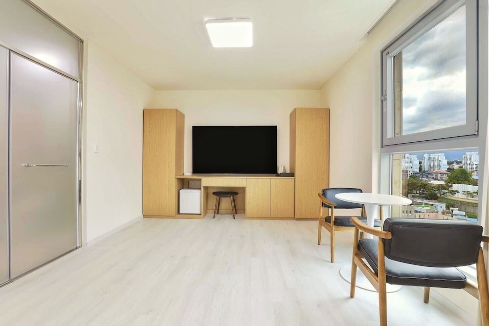 시내 로데오거리, 중앙시장, 관광시장이 도보 10분거리인 깔끔한 신축숙소로서 조리가 가능한 주방이 필요없는 경우 좋은 선택