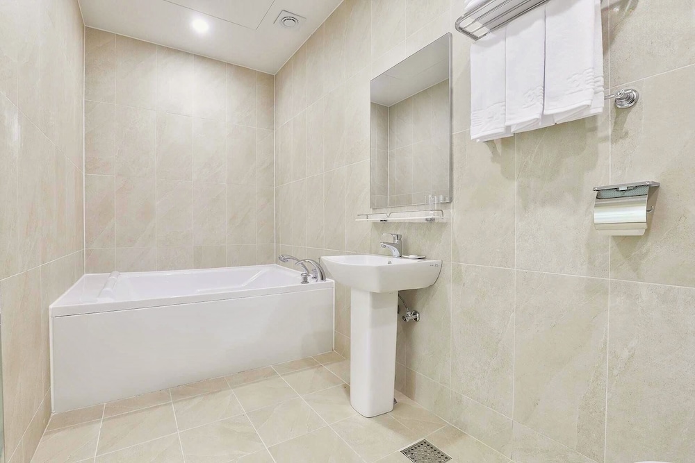 1. 욕실에 수건은 두께가 있는 높은 수의 제품이라 좋은데 발매트가 따로 없습니다 (사장님과 직원에게 직접 건의드림)