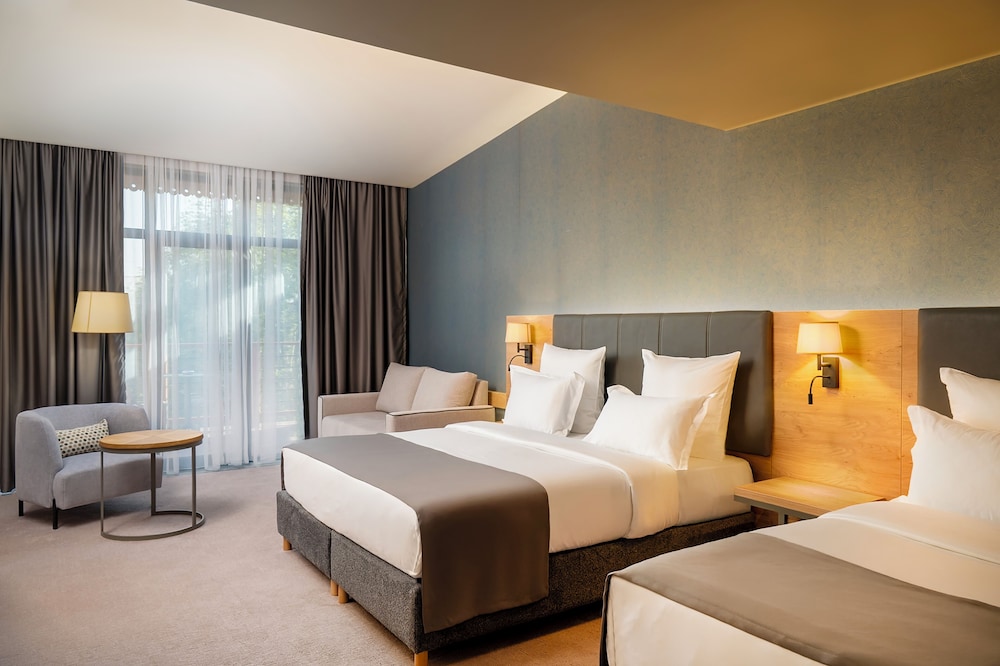 Stylish Accommodations: Experience our 72 individually decorated guestrooms equipped with private balconies, minibars, and espresso makers, ensuring a relaxing stay with modern comforts such as flat-screen televisions and complimentary Wi-Fi.