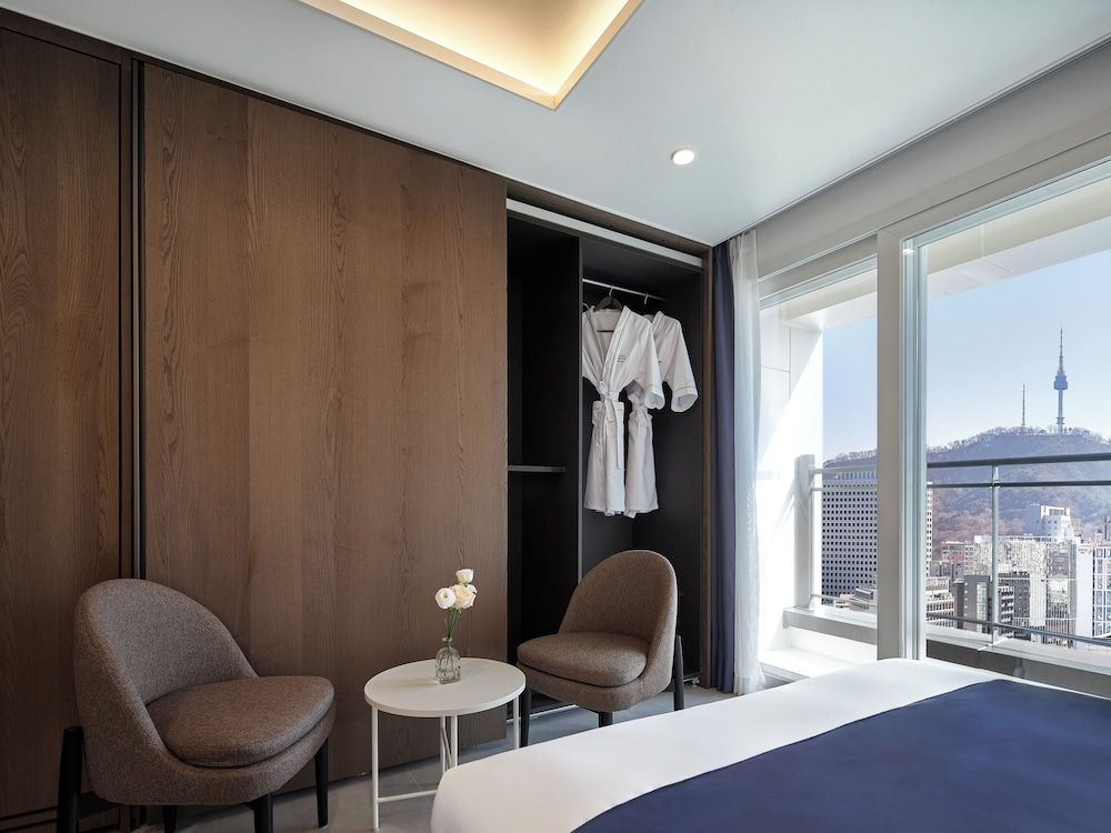 New hotel but not ready for prime time. It’s in the middle of a redevelopment area, old businesses being torn down. Limited dining, no Starbucks! Breakfast is good. A bit far from tourist attractions. Access by subway lines 2 and 5, use airport limo bus if you have luggage. Limo bus stops at Kukdo Hotel which is a short five minute walk. Rooms have a small kitchen with microwave and washing machine. ATM in lobby. No pool, beds are good with daily housekeeping.