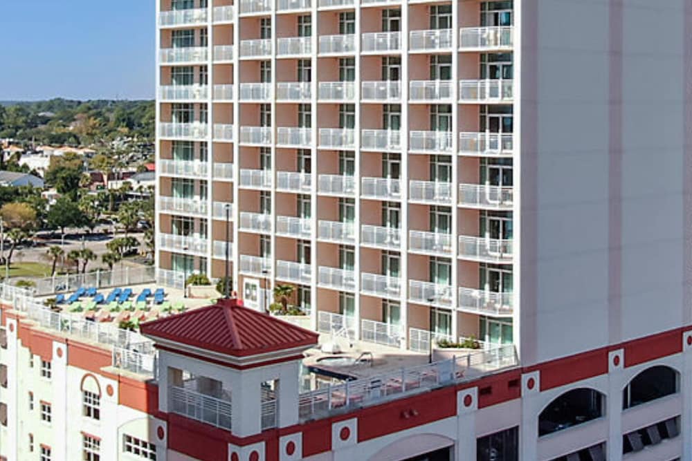 We got a nice room with partial view of the beach from our room’s balcony. Room was spacious. It has one bedroom and sofa bed in the living room. It has kitchen, dishwasher, washer and dryer. It came with plates, glass, utensils, cooking stuff, dishwashing liquid and laundry detergent. Free coffe at the lobby. It has a pool but not quite heated so we used the hot tub instead. You can use the lazy river across the street at Carolinian. It was the smallest lazy river I have ever seen. Hotel is walking distance to the beach as well as restaurants. I think it was a 20-25 mins walk to the Boardwalk.