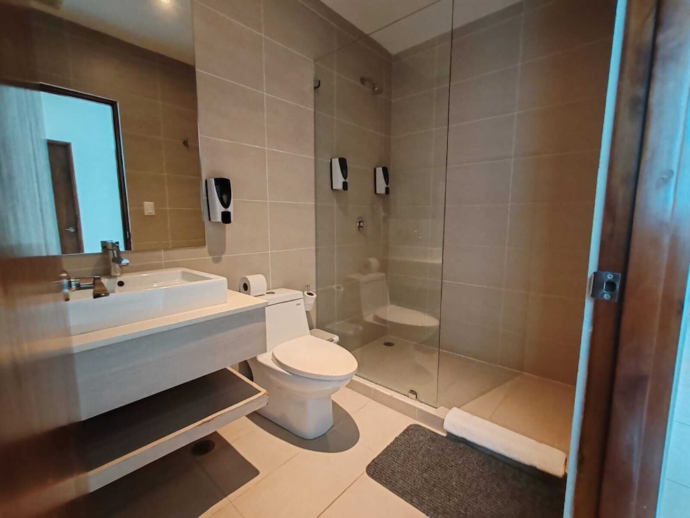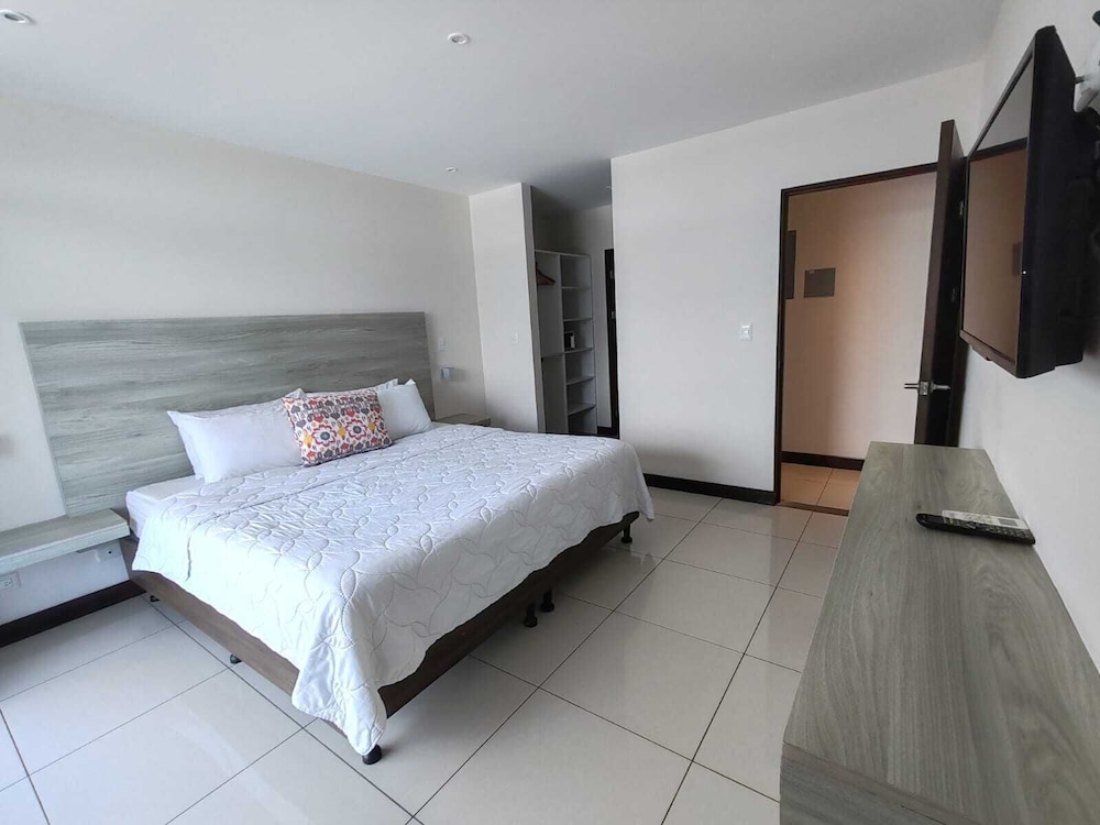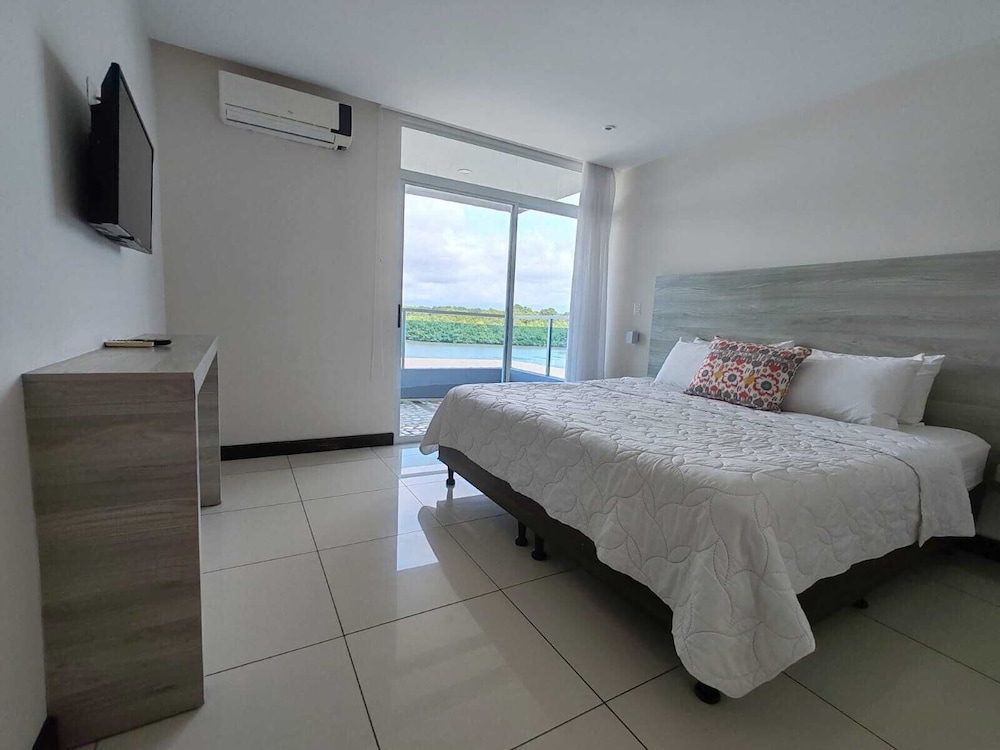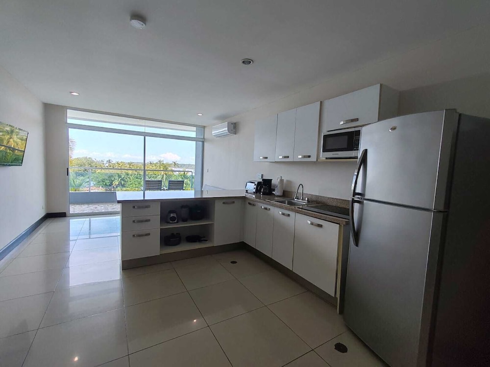 The pool on the residence side is not cleaned and it’s chipping all over. The pool deck area was also not clean. The room did not have wash rags nor blow dryer. No tv in the living room areas just a plain wall. The ad said “water” view but fails to say it’s only visible from a tiny corner of the balcony. The area is not safe and it’s actually listed on the US Embassy heat map for being high crime. All the homes have bob wire around their entrances and windows in addition to the barricades. You feel like you can’t leave the hotel. Highlight is the restaurant and bar.