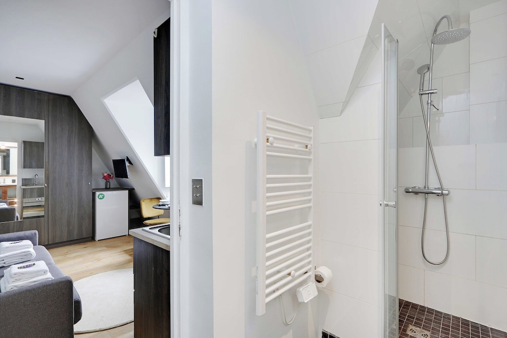 Das Bett ist ein Schlafsofa, der Zustand auch nicht toll ist. Wi-Fi geht zu Glück. Das Bad ist klein, aber dank kleines Dachfensters ist der Raum sehr hell. Leider das Dachfenster konnte nicht öffnen. Der Fernbedienung dafür hatte kein Akku mehr dabei. Beim Duschen muss man vorsichtig sein, weil die Glastür nicht bis zum Boden dicht ist.