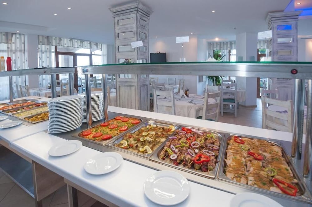 Indulge in all-inclusive dining options at our onsite restaurant, offering a complimentary buffet breakfast daily. Sip refreshments at our beach bar or grab a quick bite at the cozy café, where tasty snacks await.