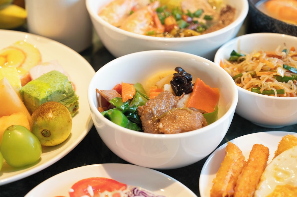 The breakfast spread is quite good with a live noodle bar that someone will cook fresh noodle for you. Selection from fresh salad, fresh fruits, yogurt cups, Asian dishes, bread, Chinese dessert soup, noodle soups, porridge, coffee and tea.
