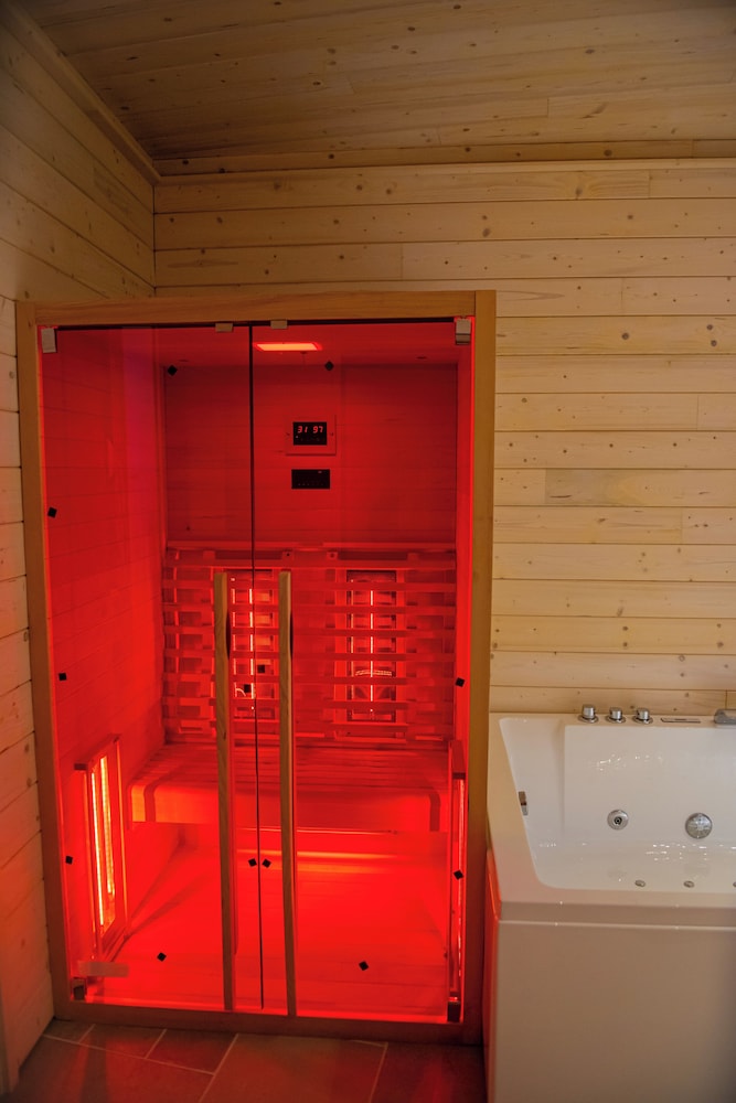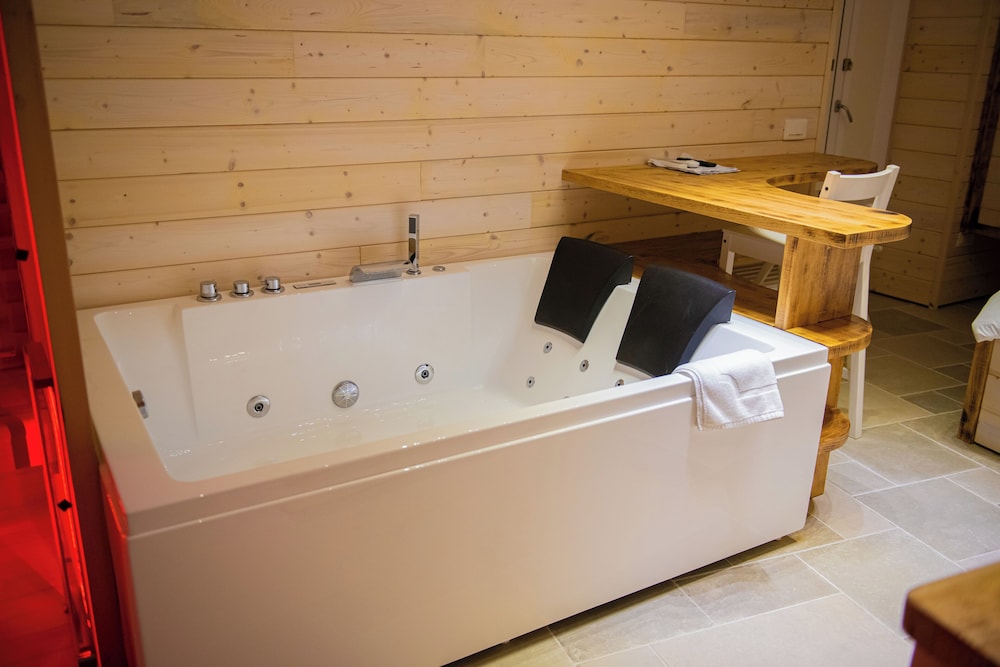 Indulgent Accommodations Relax in one of our two exquisitely furnished guestrooms, each featuring a private indoor hot tub, Smart TV, and a cozy kitchenette equipped with an espresso maker, ensuring a delightful stay.