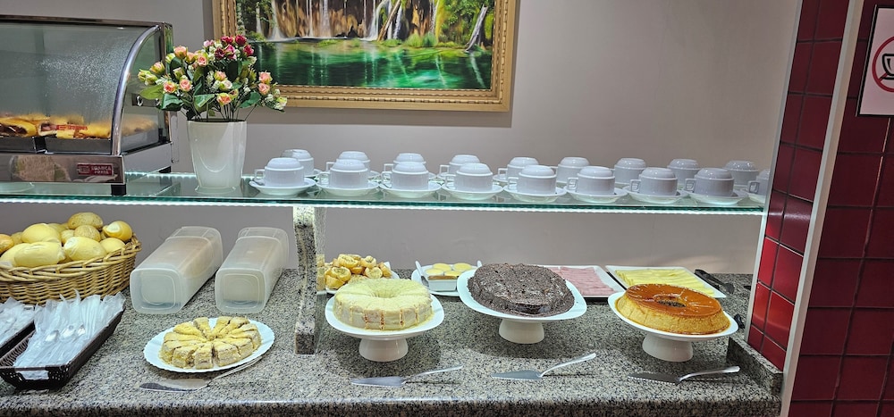 Excelente custo benefício para quem está em trânsito a trabalho por SINOP, dispõe de estacionamento fechado gratuitamente, bem como café da tarde com bolos e pão de queijo quentinho, café da manhã simples mas com o essencial da refeição. Quartos reformados e muito limpo. Troca diária de toalhas. Super recomendo!