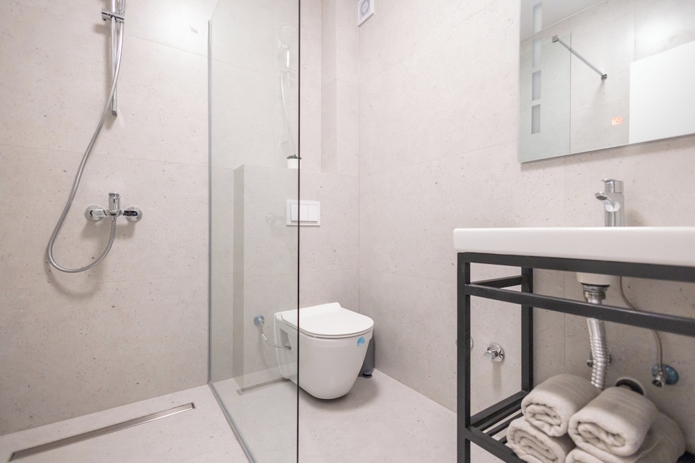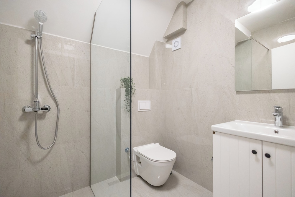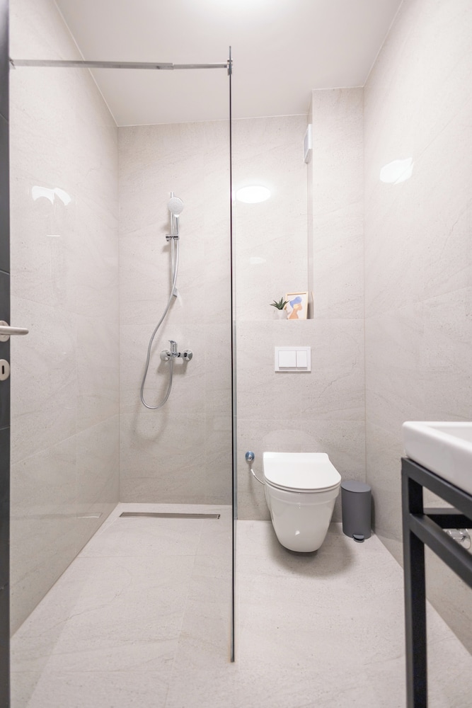 Perfect all around! Extremely clean, modern, comfortable beds, equipped kitchen, spacious bathroom. Excellent location in centre and very quiet for sleeping. Highly recommend. Please note there is no lift and the bathroom floor will get wet from the shower. Don't let this stop you - I loved this apartment and would return any time!