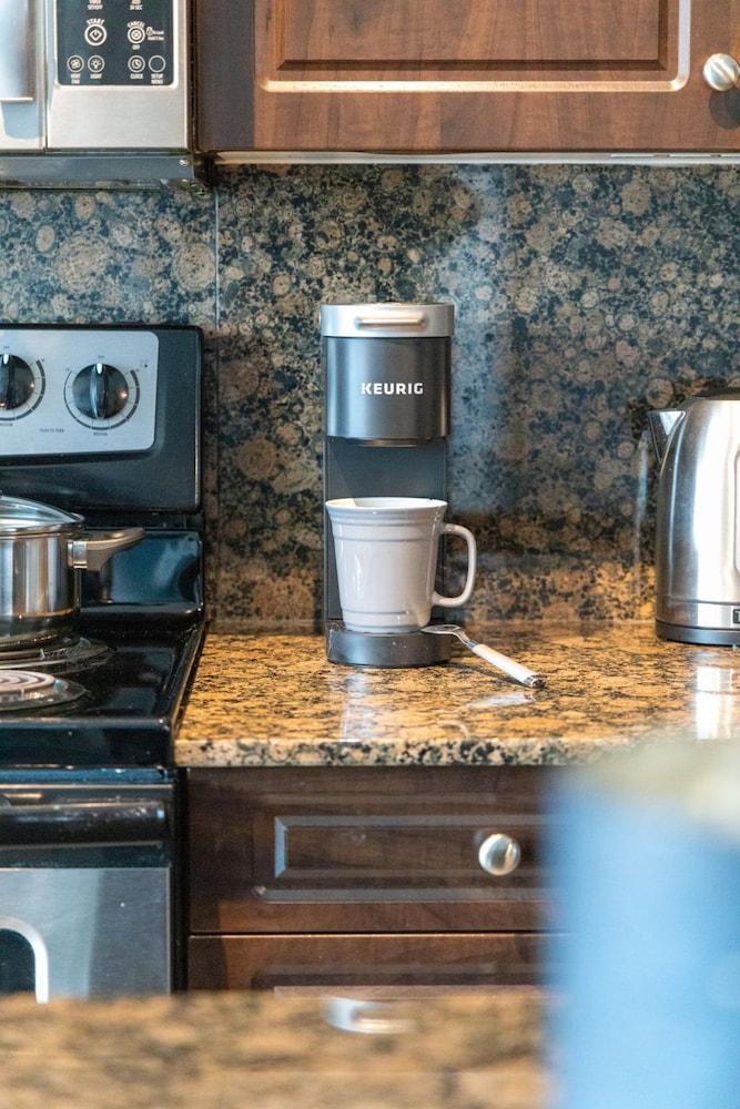 The unit was lovely and clean. I It was a home away from home and had all the things you'd need , including a full kitchen with a stove, dishwasher, microwave and full size fridge. The unit came stocked with all the usual kitchen things you'd need.