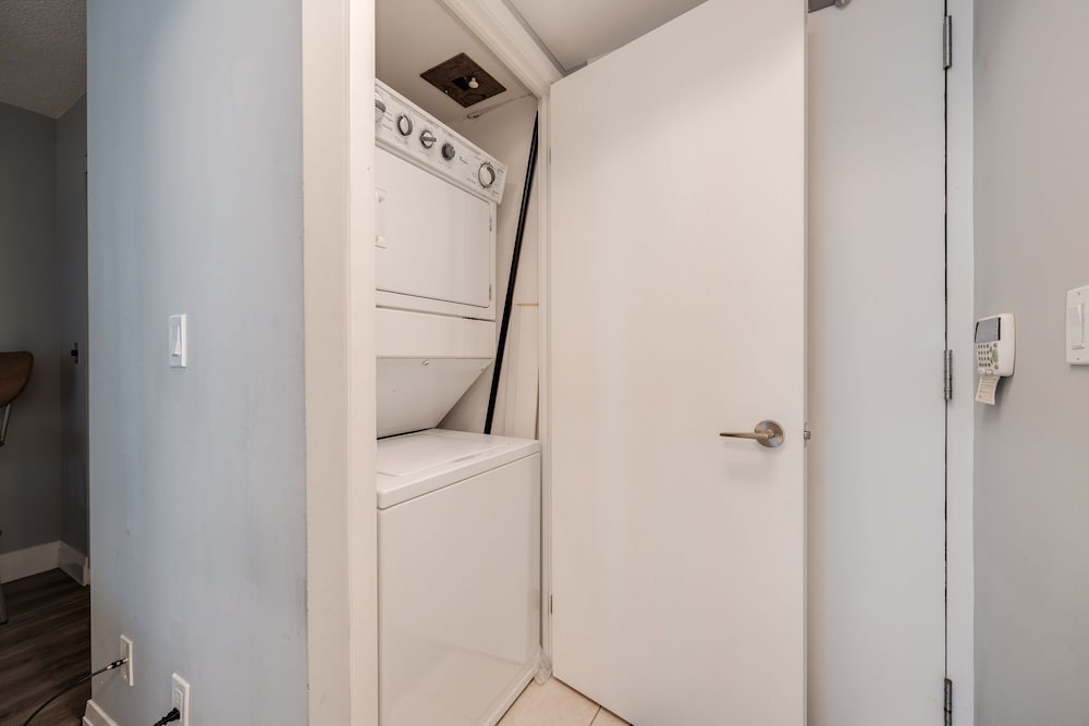 If I could post pictures I would. The photos do not match the room. The ceiling of the bathroom was taken apart and replaced with a taped up tarp! This room is getting run down, dirty and cracked trim, kitchen cabinets peeling and broken blinds everywhere. No where near a hotel experience, no toiletries or coffee in the room, towels were left in the laundry for us to find. Only reason I didn’t have a fit was because the location. This room should not be advertised on Expedia.