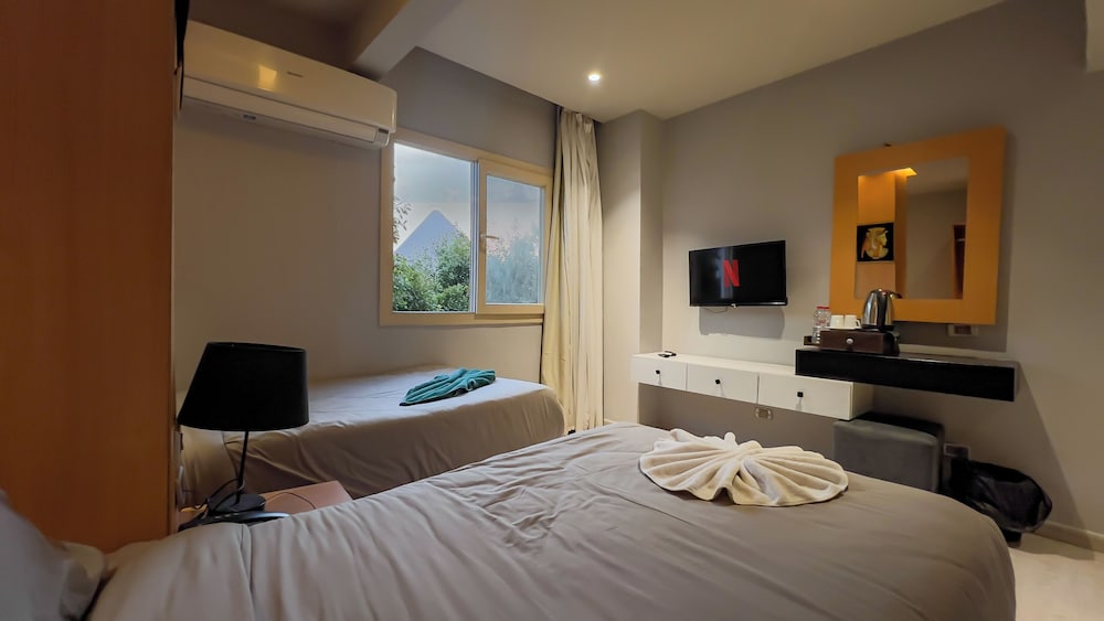The rooms were clean. The air conditioners worked without any problems, the city is very hot, this is important :) It is very close to the pyramids. We walked. Some rooms and the terrace have a really great view of the pyramids.