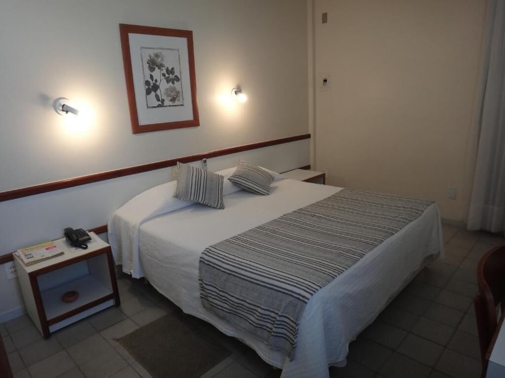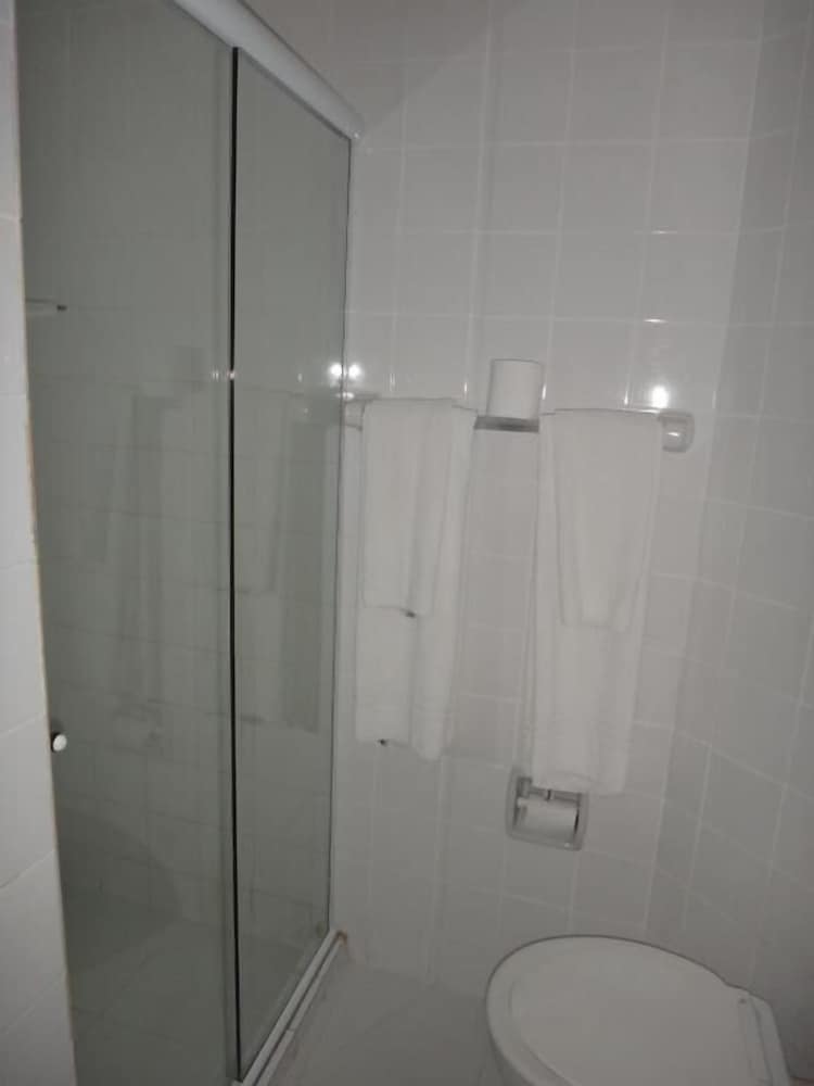 Pontos críticos: nos andares mais baixos, os sons da rua são audíveis no interior do quarto. Mobiliário e revestimentos do banheiro gastos pelo tempo, mas limpos e funcionando a contento, bastante digno. A cama é um pouco estreita, mas confortável com lençóis limpo e de boa qualidade. Não dispor de água no frigobar, necessário retirar na recepção. Não oferta serviço de restaurante à noite.