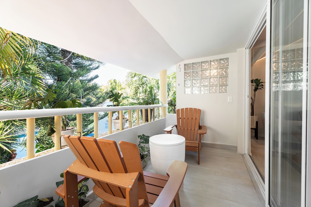 Feel right at home in one of our 9 spacious guestrooms, each featuring a fully equipped kitchen with full-sized refrigerators and stovetops, ideal for cooking your favorite meals. Relax on your private balcony or patio, soaking up the tropical ambiance.