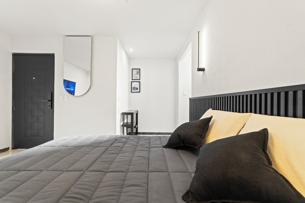 El cuarto fue reservado por 2 noches solo que lo usamos una noche, la cama tenia chinches y nos picaron, ya no no reembolsaron el dinero de la segunda noche. A primera vista se ve limpio l hotel pero ya en la noche esta mal que chinches nos picaron el la espalda y piernas. Matamos dos chinches pero (1:24am) ya no pudimos dormir. Si llegan a usar la cochera… NO lo hagan, se estacionan otros y no te puedes ir hasta que se despiertan y salen los otros huéspedes. En la pagina dice 400mts del centro,… otra mentira, esta a 983 mta caminando, ya que no puedes ir al centro en linea directa, entonces te hacen pensar que esta mucho mas cerca delo que realmente es, nosotros caminando en el centro entramos a ver otros hoteles y la verdad hay muchas opciones al mismo precio y mucho mejor