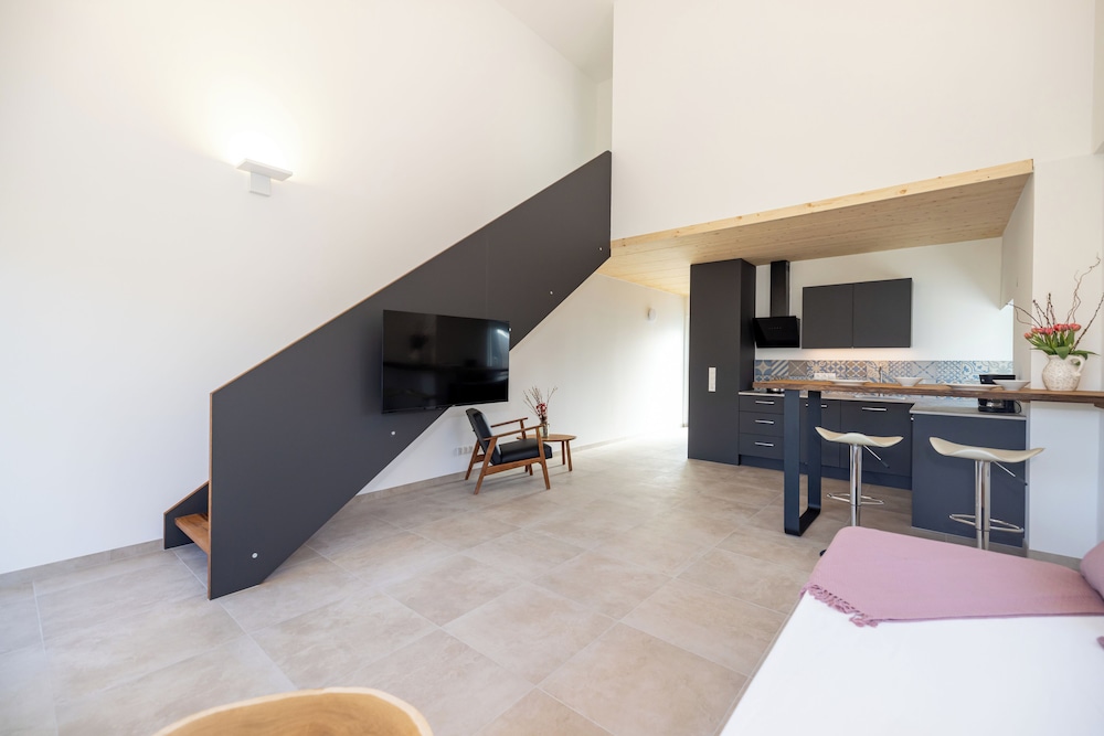 Relax in one of our five cozy guestrooms, each featuring fully-equipped kitchens, balconies for al fresco dining, and modern amenities providing the perfect home-away-from-home experience.