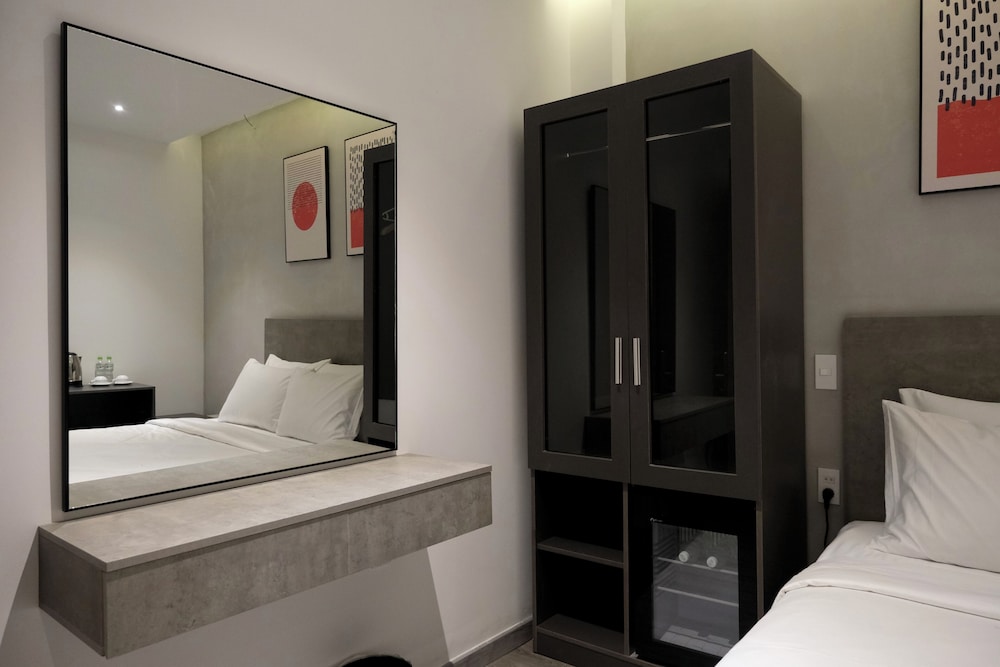 延四泊しました。レタントン通り、ベンタイ市場近くで立地条件は良いです。周囲には飲食店やコンビニがあり便利です。部屋は清潔でした。スタッフの対応は良く、フーコック島への移動中の五日間、キャリアケースを預かってもらいました。バス乗り場が近く、空港からバス利用でも、バス停からホテルまで徒歩で10分かかりません。MRT駅も近いです。ドンコイまで1駅です。