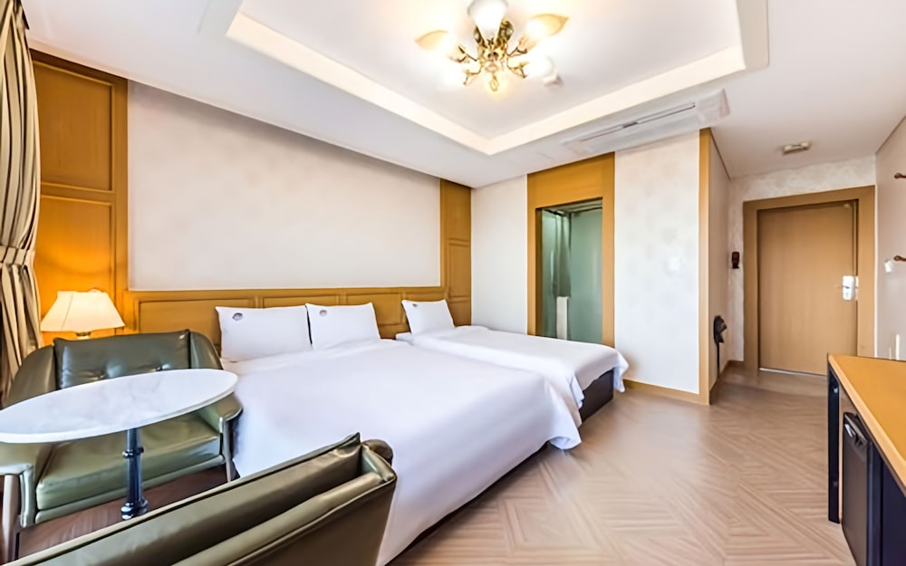 호텔이 아니라 모텔중에서도 하급 모텔입니다. 샤워기 거치대 망가져있고 칠도 다 벗겨져있고, 침대 매트리스는 그냥 스프링이라 허리 아파 죽을듯. 암막커튼도 없어요.