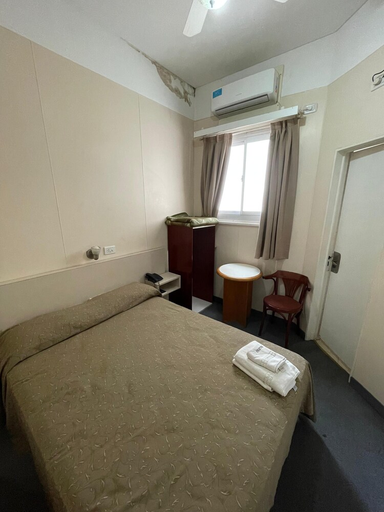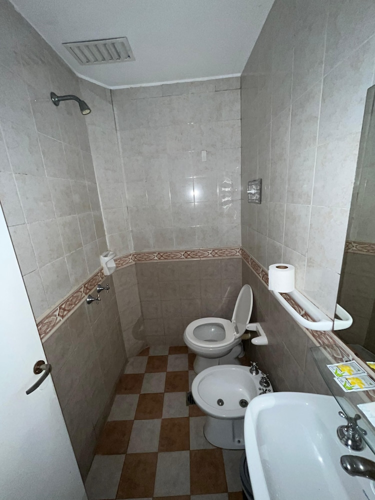 El baño era 2x2, la ducha estaba arriba del bidet y dejaban un secador para el piso con un trapo todo desteñido. Las puertas oxidadas de acero y viejas. La habitación no funcionaba el contra ok remoto del tele, el aire era muy viejo y no largaba frío y las luces andaba 1 sola. No volvería nunca