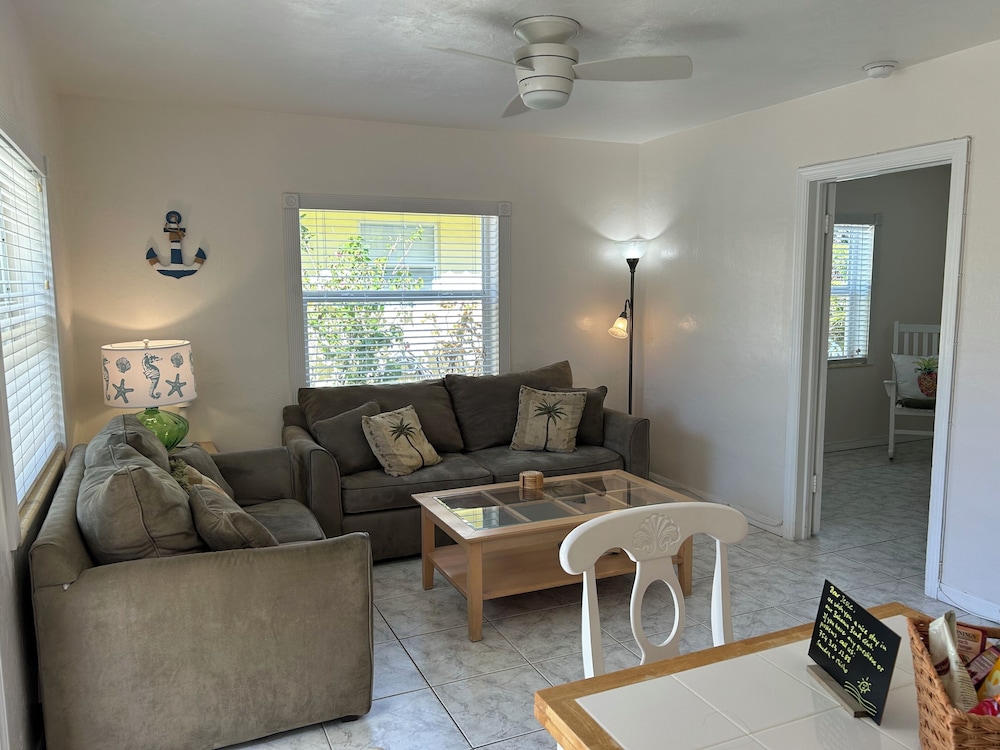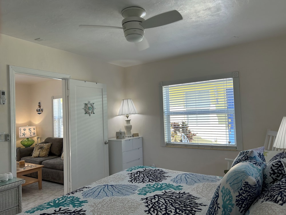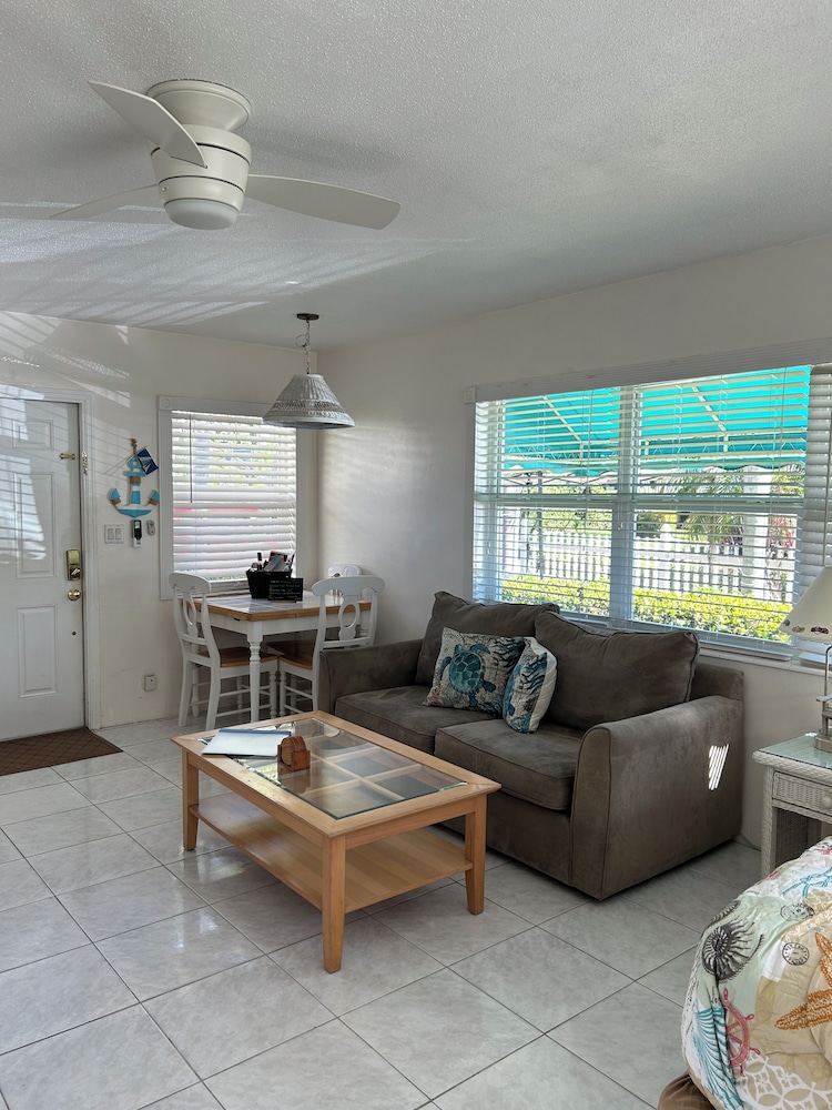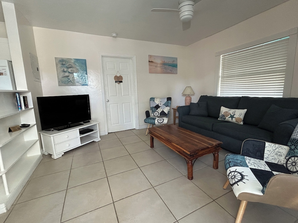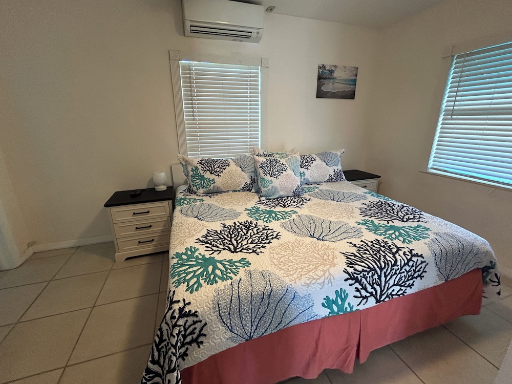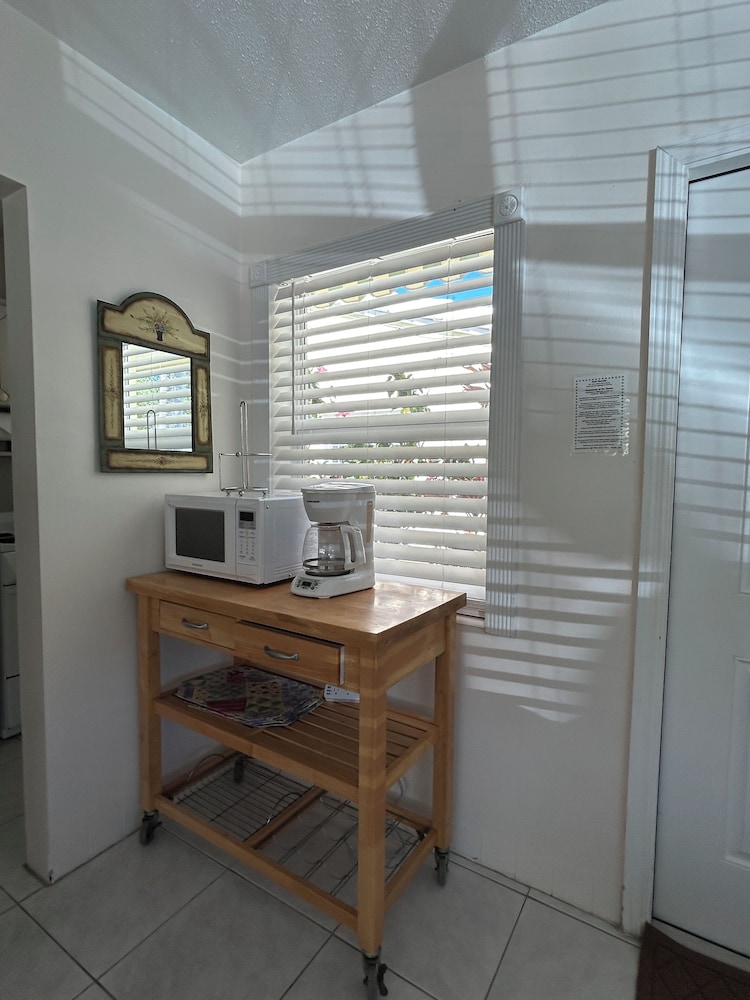 We can’t say enough about this property. It was so perfect: nice, residential neighborhood, very clean and comfortable accommodations; kitchen was well equipped; the pool was right outside our door; the owners were responsive; a block or so from the beach; and best of all… Rocky the cat came to visit us daily. We will definitely be back. My husband and I kept saying that it literally could not have been more perfect. :)