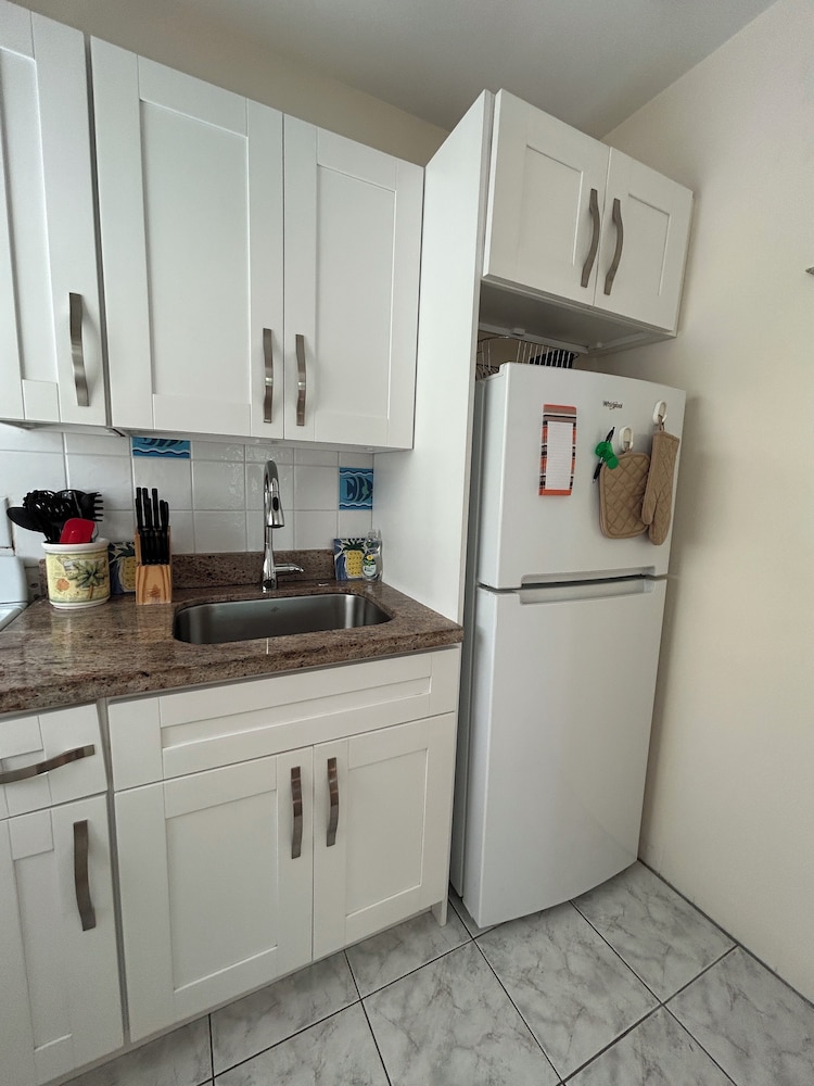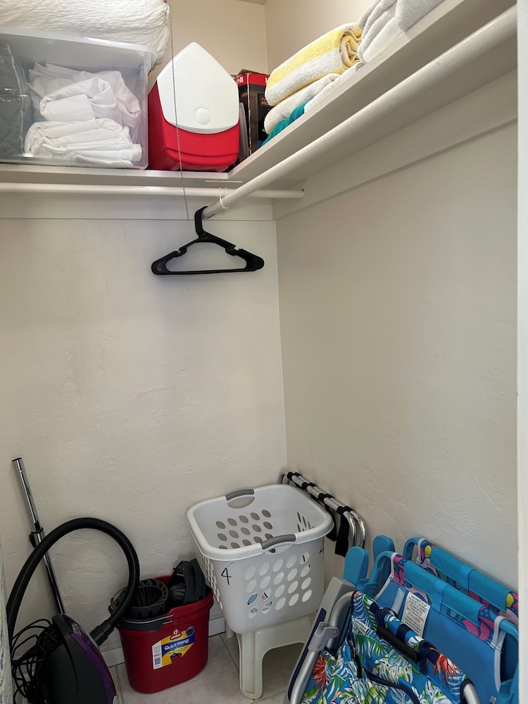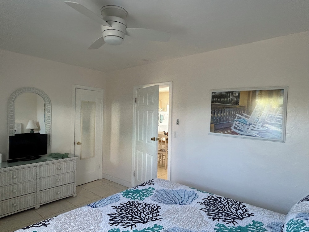 Loved the space of apartment like unit.. super clean! Bed , linens were perfect.. brand new beach chairs were very convenient. No ice on site & no ice trays for making. Beach was much closer than initially anticipated! Wish the back door had additional lock.