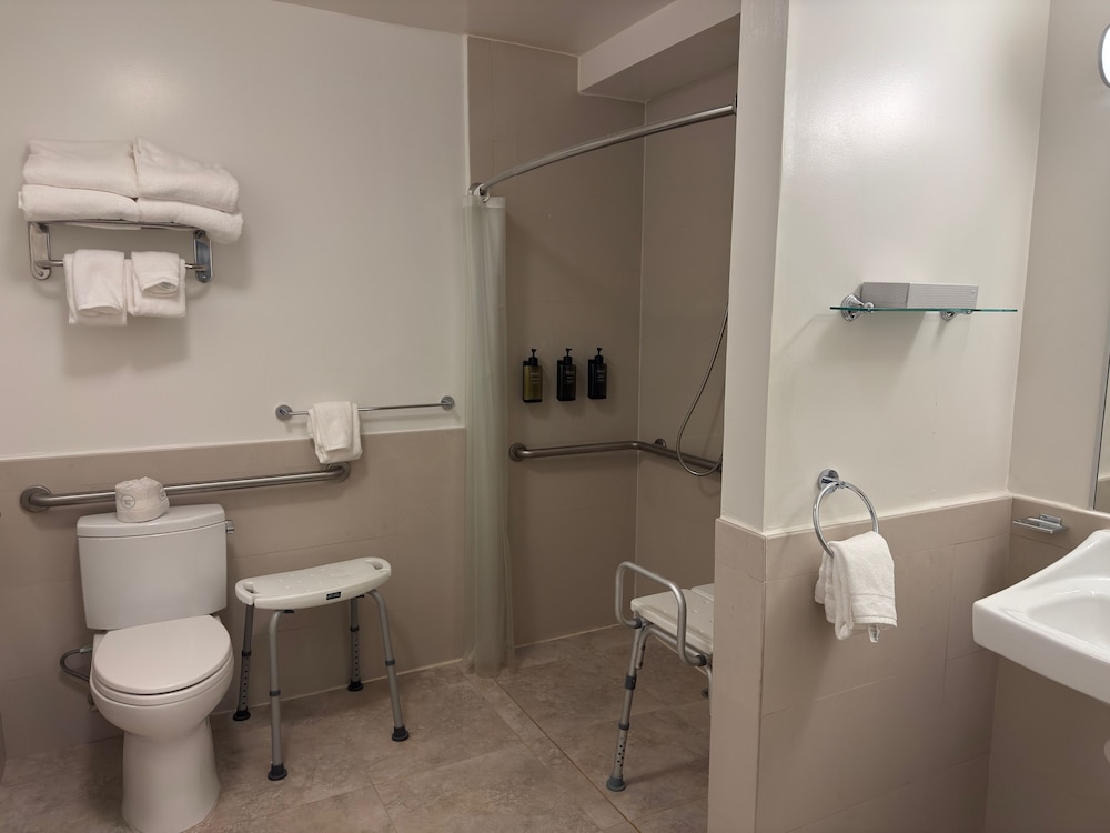 Entrance is hard to see from the street and parking is not well marked. I had to move my car after checking in since I had no idea where to park and I was in the wrong area. Not safe for people with disabilities due to the parking up the hill and the steep walk from the parking to the lobby.