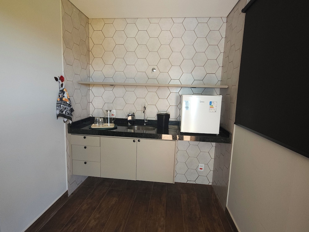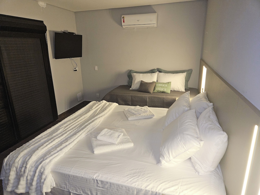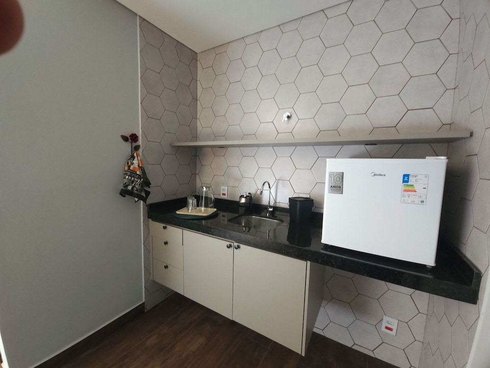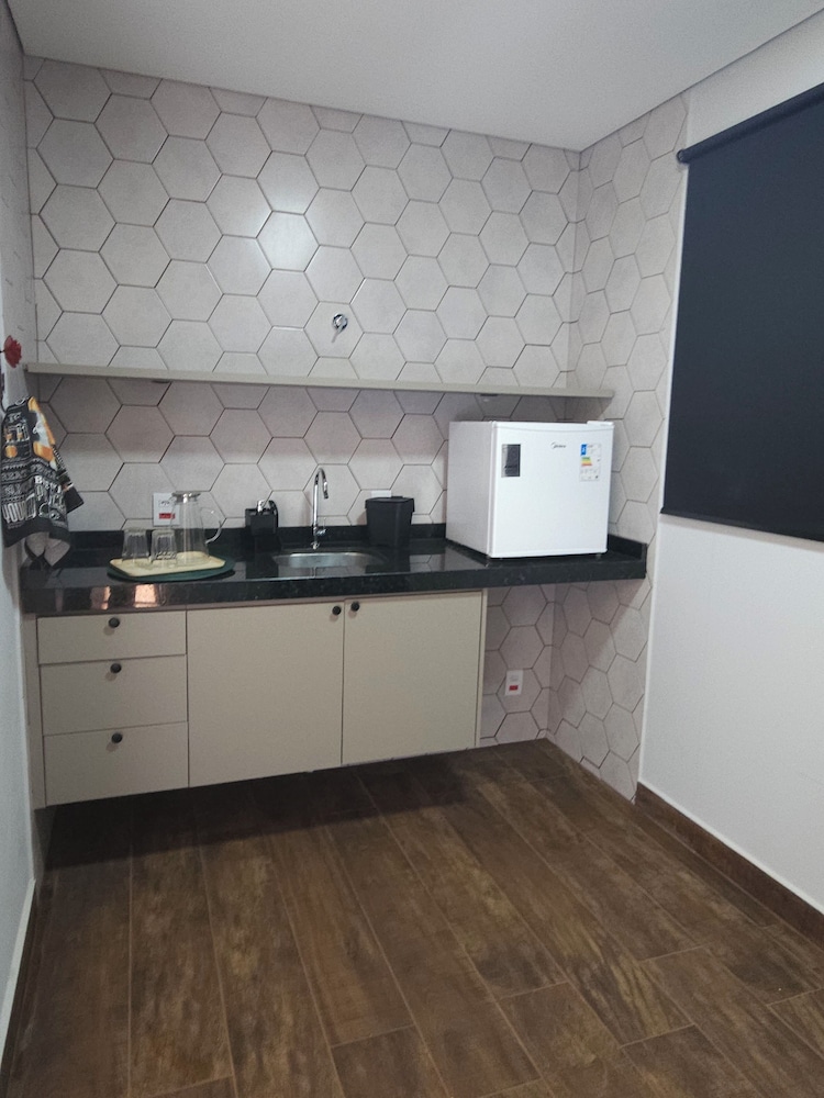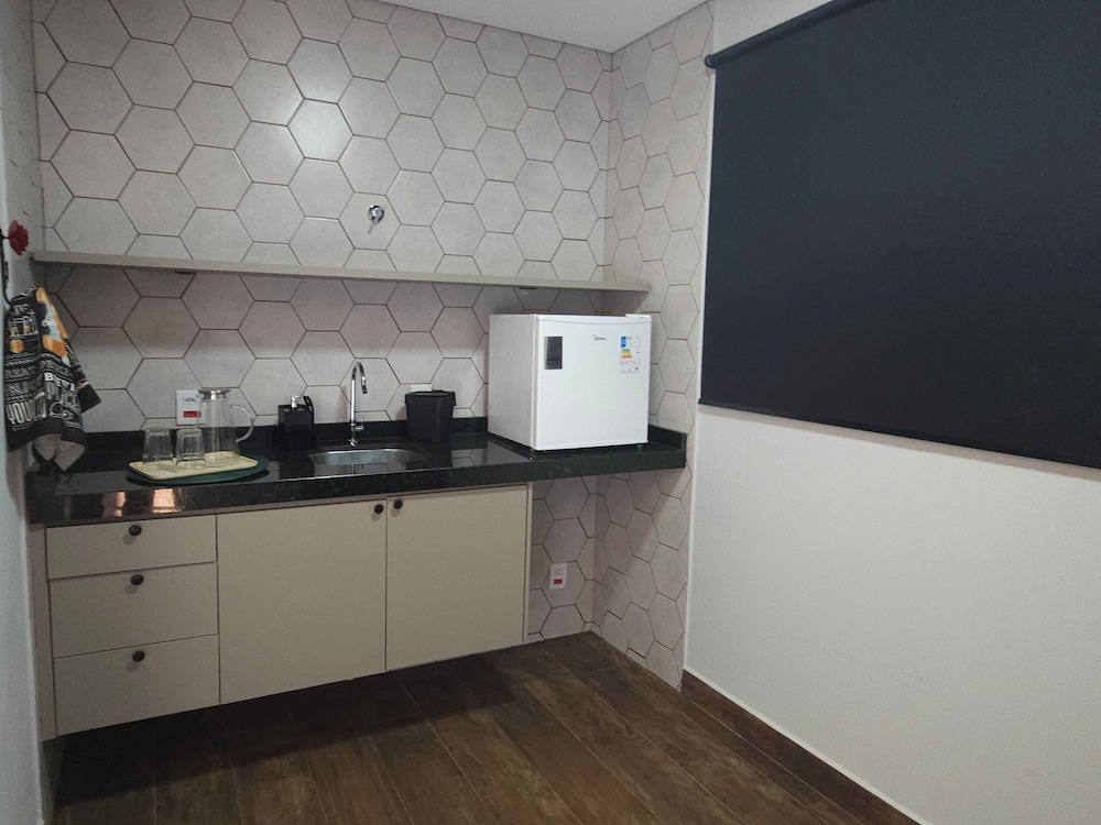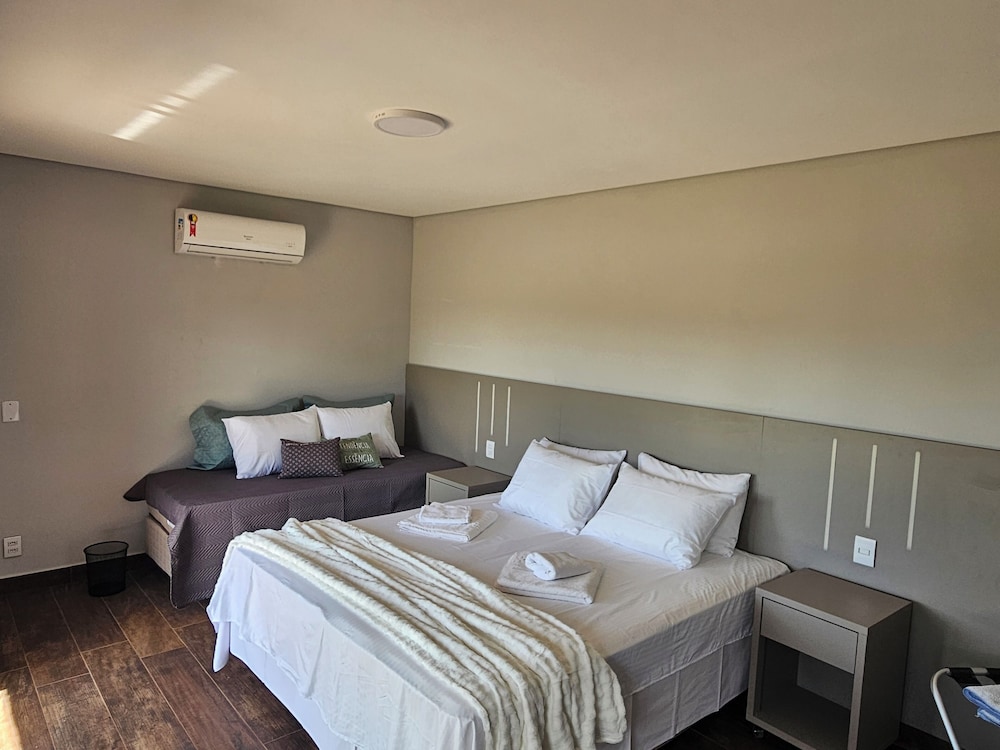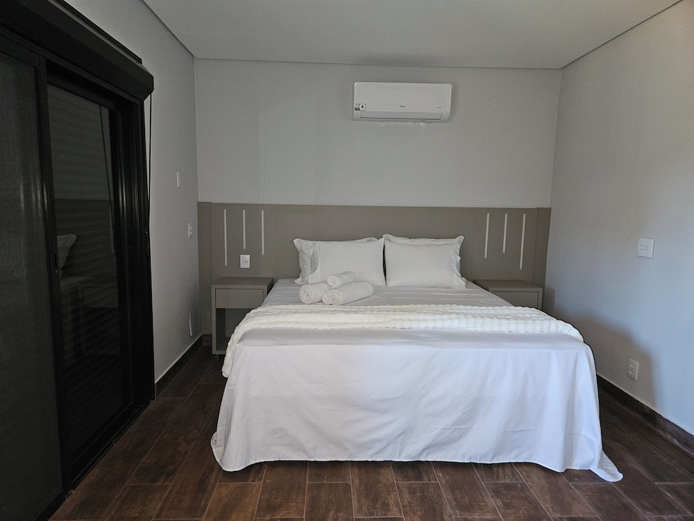 Quarto grande, cama confortavelmente e a estrurura de pia e frigo bar no quarto ajudou demais minha estadia por estar com nossa filha de 2 anos.