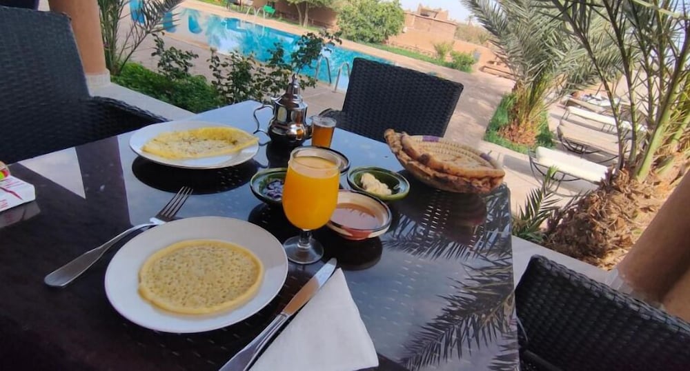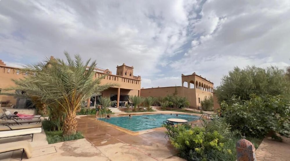 Magnifique kasbah rénové avec goût et tenue depuis plusieurs génération. Chambre propre et climatisée. Adorable piscine au pied d’une palmeraie de plus de 50 m2 qui a accueilli nos balades de fin de journée. Sans compter la gentillesse de nos hôtes !