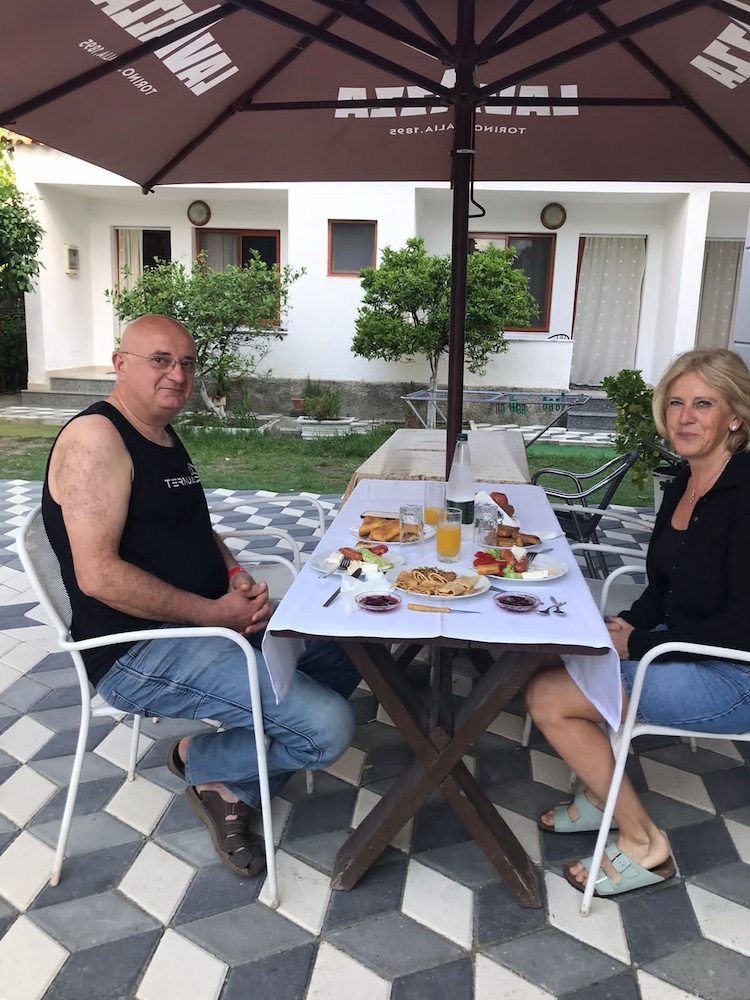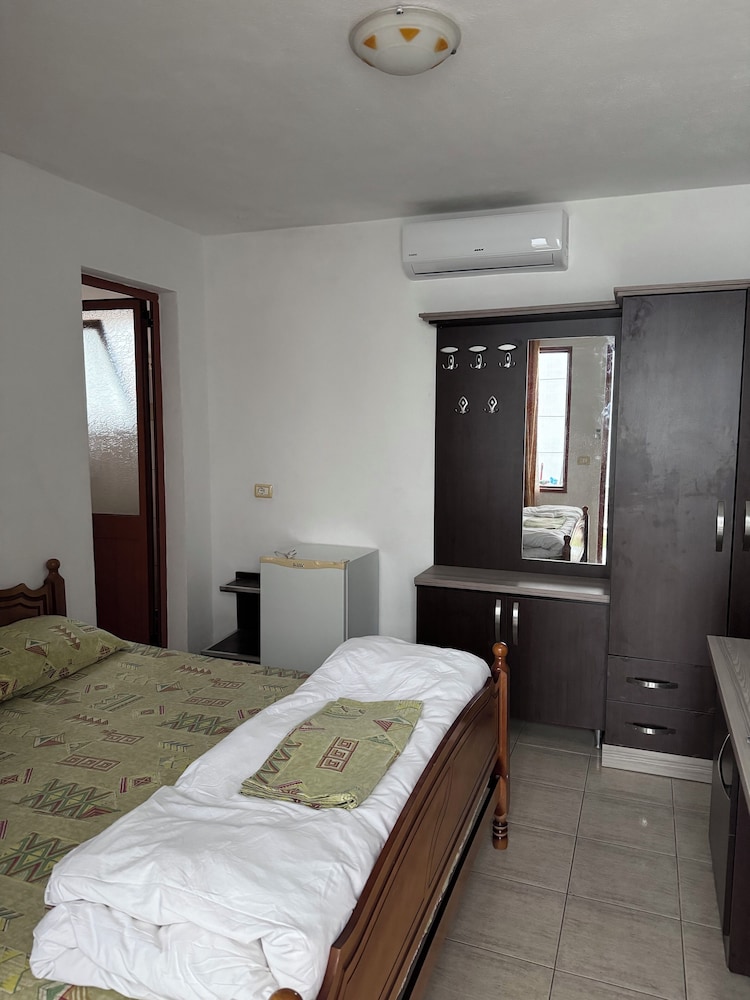 Vila Cano is a budget hotel fifteen-minute walk from the beach and supermarkets. It is an old residential building converted into a hotel. The worst aspect for me was that the bathroom is not private but shared by other guests, which made my stay rather inconvenient. Also, there is no shower curtain nor shampoo provided. There is A/C and fridge in the room, which is nice. My room was on 3rd floor with no elevator. There is a kitchen on ground floor that I did not use. The area reflects rural Albanian living with narrow streets. If you are really tight on budget, and do not mind walking 15 minutes to beach, it may suit you well.