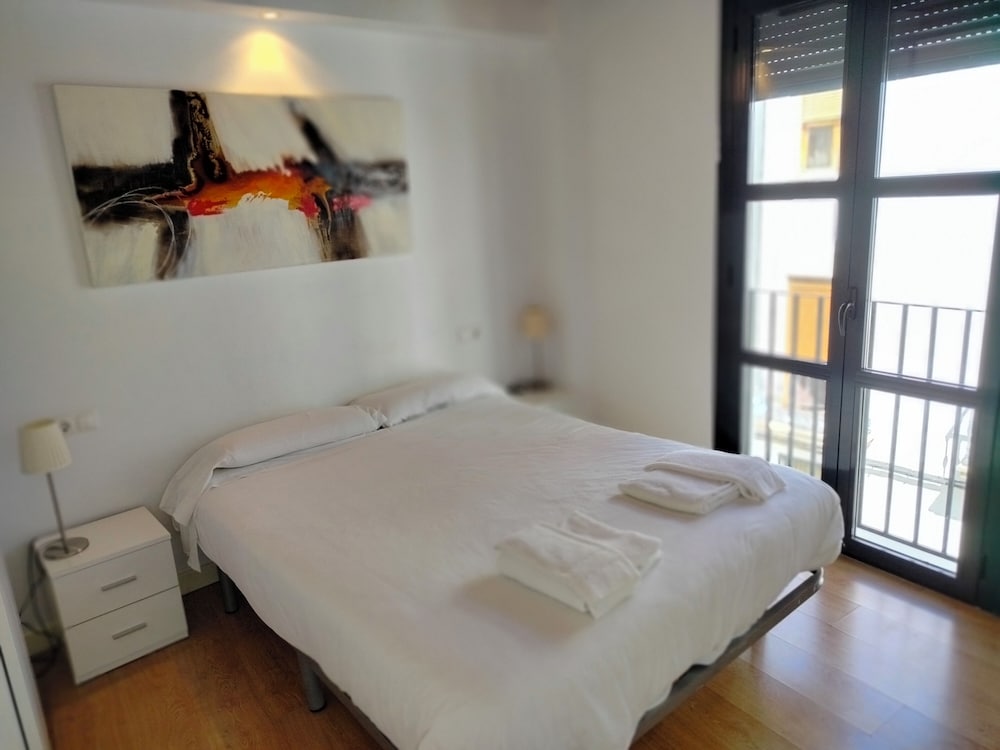 Excellent central location to the town - could hgardly be closer! 20 min walk to train station. We were in a 2 floor duplex which had 2 extra bedrooms which would be brilliant for a family . Ground floor lots of space , good table to eat at with very efficient air con . Very clean and bright but fully shuttered.