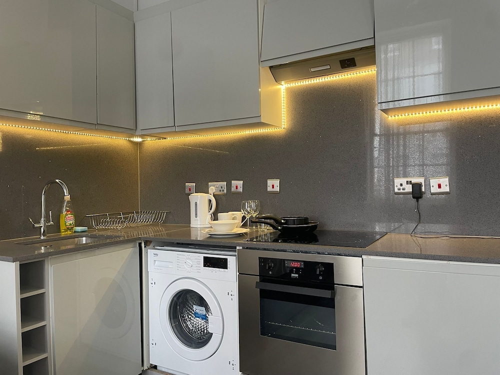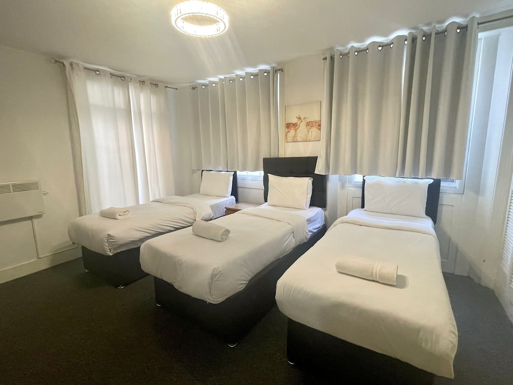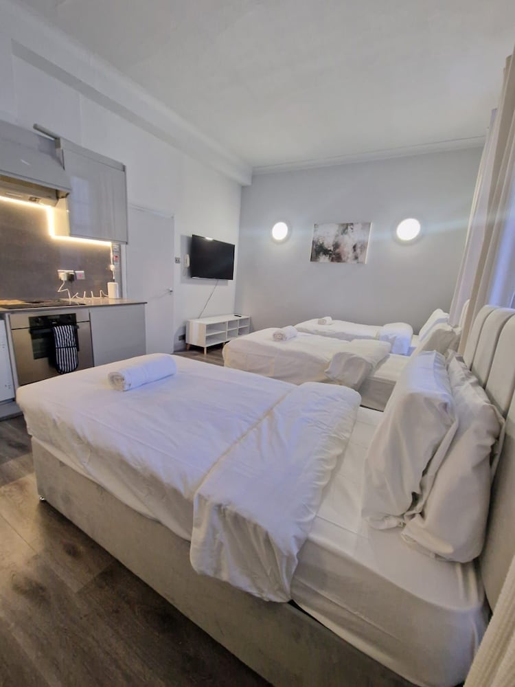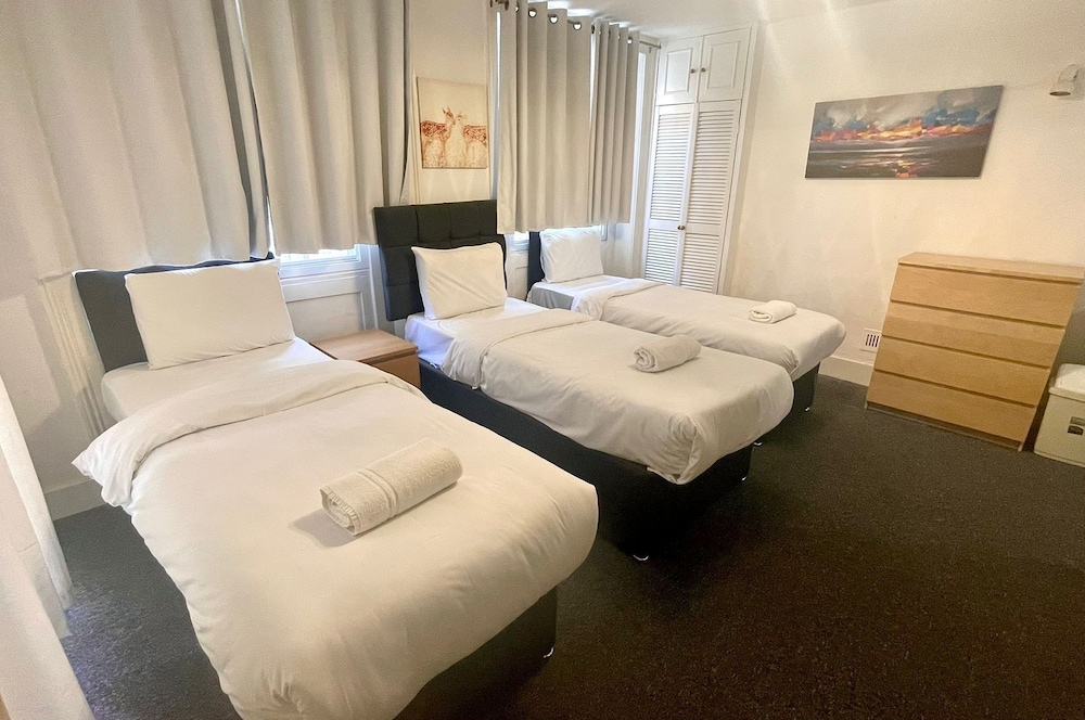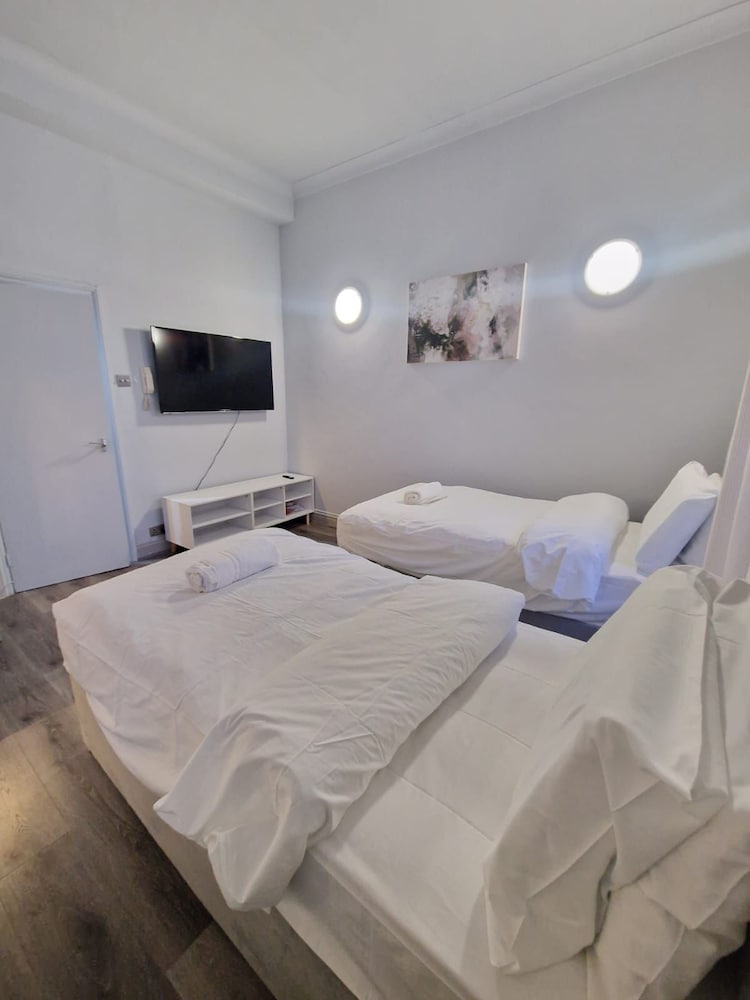When we arived we have to wait for keys 30 mints .no body at property to well com .the rooms i haved cant open windows we r in basement. Fully dump smell.tv a d net not working no ventilation in property. Keep ringing the onwer not answered. This morning when we left this no one to collect the key from us.keep ringing the owner he never answer.at last we left in electric bord.my advised to dont book this property