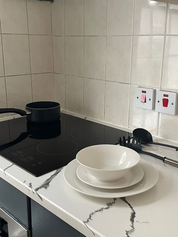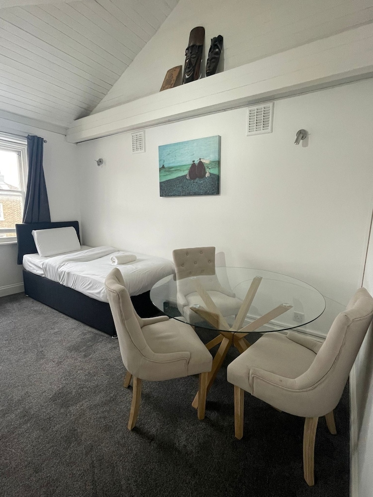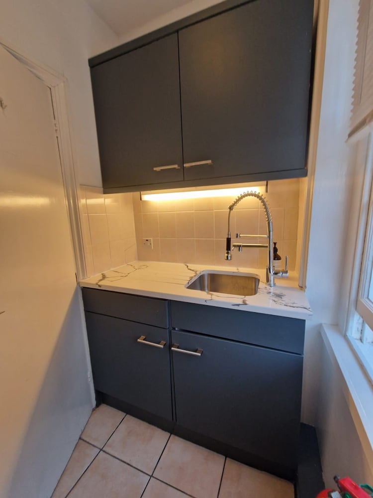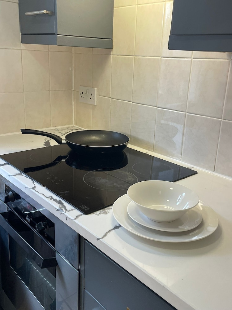 When we arived we have to wait for keys 30 mints .no body at property to well com .the rooms i haved cant open windows we r in basement. Fully dump smell.tv a d net not working no ventilation in property. Keep ringing the onwer not answered. This morning when we left this no one to collect the key from us.keep ringing the owner he never answer.at last we left in electric bord.my advised to dont book this property