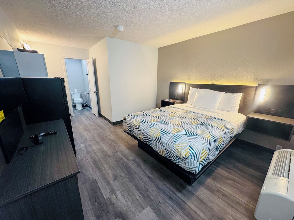 Outside of hotel looked a little run down.. The room was newly renovated. Great ammemties, had a large refrigerator! Air was ice cold, but the floors needed mopped and the shower wasn't the cleaniest i ran the shower and called it a day... the staff was really nice.