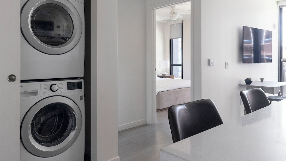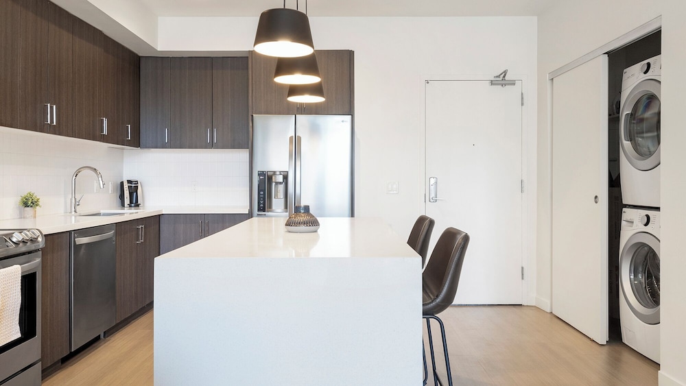 While the unit itself was beautiful and well kept, there were some things that left us disappointed. The internet did not work-not a huge deal but a little frustrating. We were told that short term stays do not include parking, but during checkout we were asked to return our parking pass. We had to pay $16 a day to park in the underground garage. I’m not sure that I would recommend this place for short term stays, but think it would be great for long term stays!