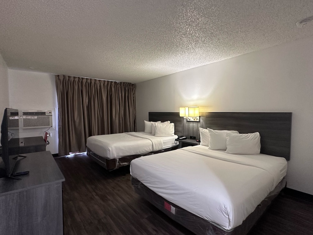 Had 2 Queen beds in Room One Bed was so sunken in that only one person could sleep on it and the other bed was just fine Tons of homeless people running around but for the price not bad. Also no coffee machines in room and Tv channels are none existent.