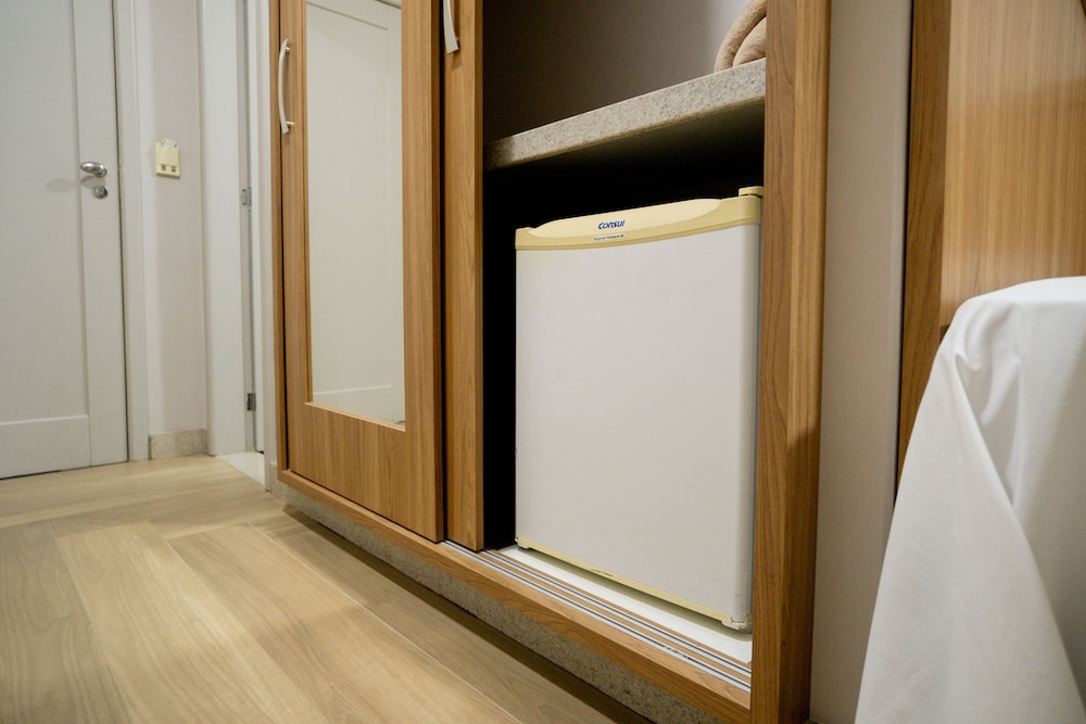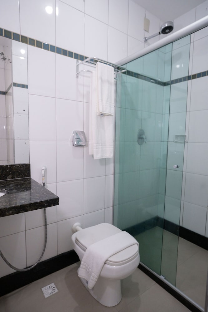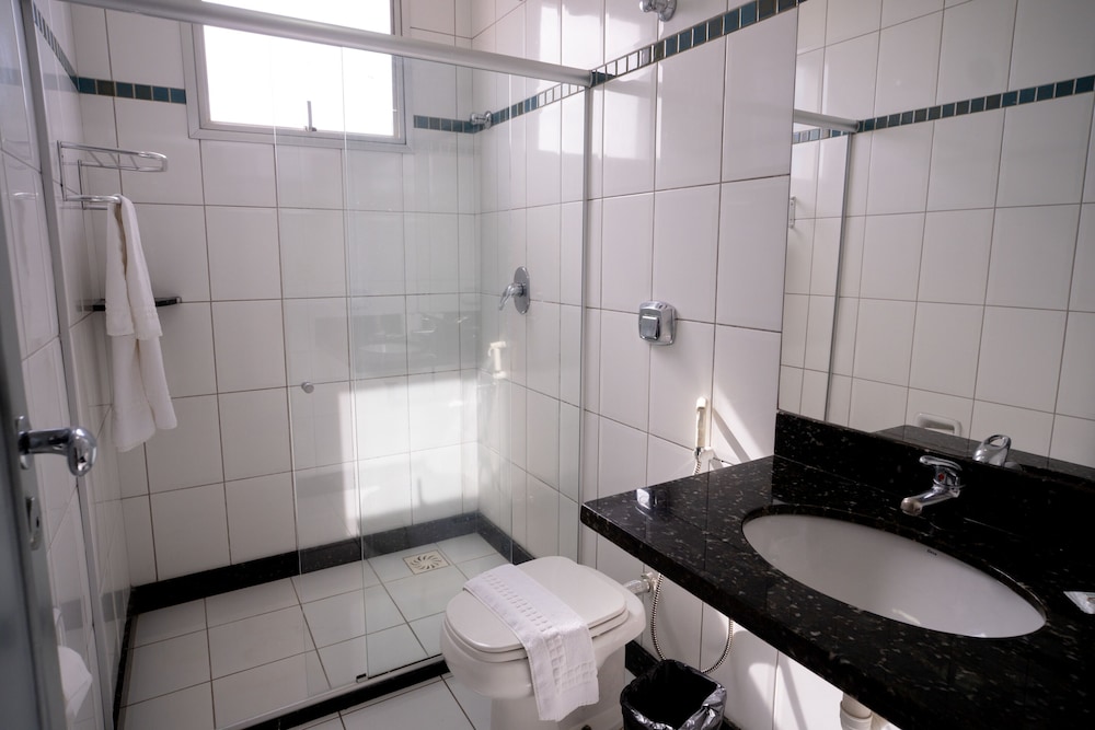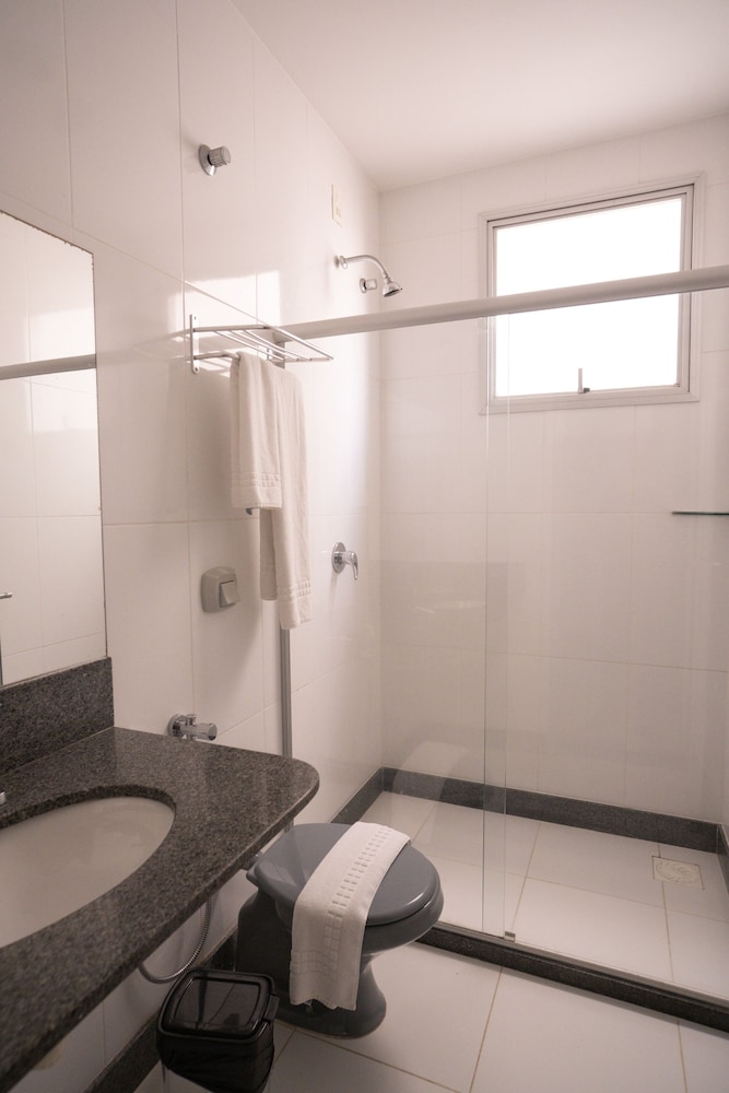 Não escolha o quarto de solteiro. É apertado demais. O banheiro é amplo. O frigobar dá sinais de falta de limpeza. O espaço interno do quarto de solteiro é muito pequeno. Recomendo a escolha do quarto de casal.