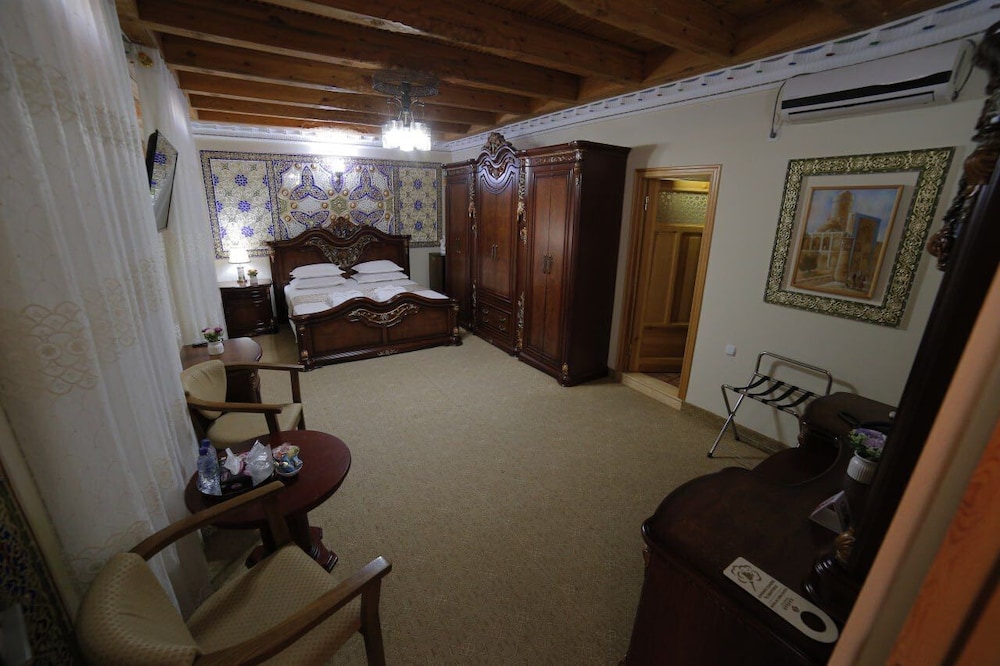 Step outside to discover a world of historical wonders, including the stunning Lyab-i-Hauz and Nadir Divan-Beghi Madrasah, all within a short stroll. With Bukhara International Airport just 5 km away, your adventure begins here.