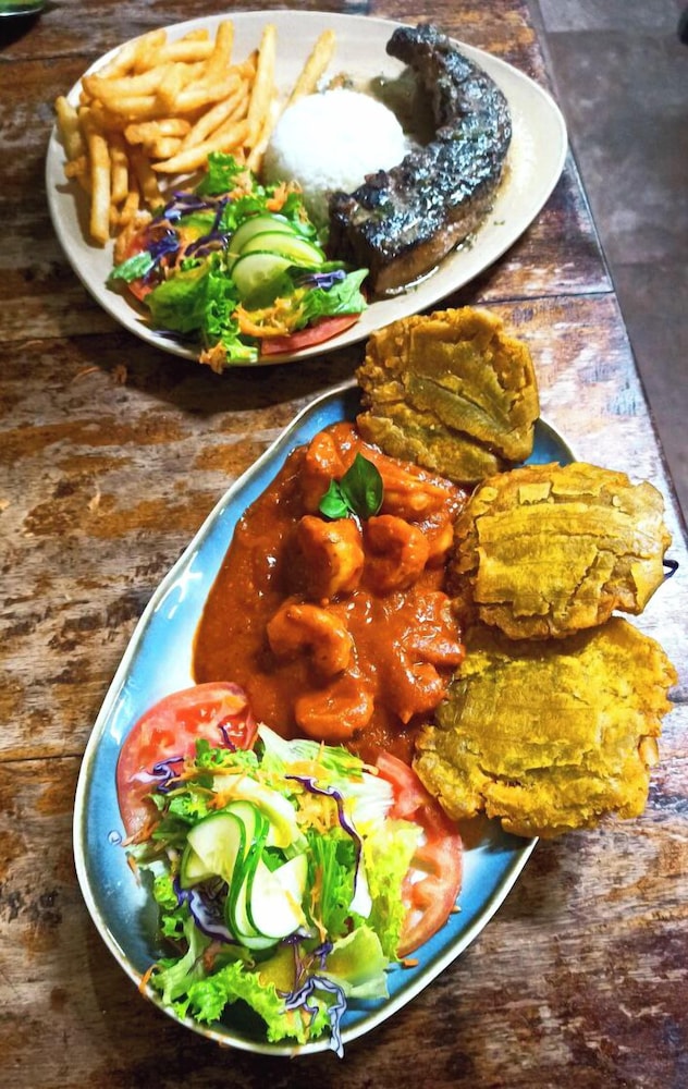 Hotel bonito, en medio de la naturaleza, cerca del Río Sarapiqui. Habitaciones e instalaciones cómodas. Todo limpio y bien cuidado. Tiene un restaurante muy bueno, especialidad en carnes, aunque todo lo que pedimos estuvo muy bien. Desayuno bueno, variado, aunque quizás podría ser un poco más abundante. Es lo único a mejorar. Buen precio. Familia de monos aulladores en árbol cercano. Senderos para caminar dentro del hotel.