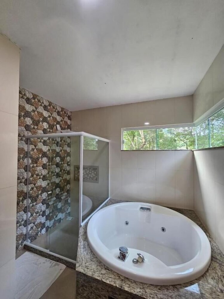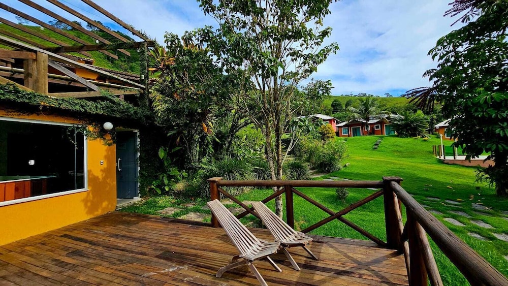 Uma pena que a cama é um pouco dura, isso atrapalha um pouco a experiência. O chalé é bacana, tem garagem pro carro.