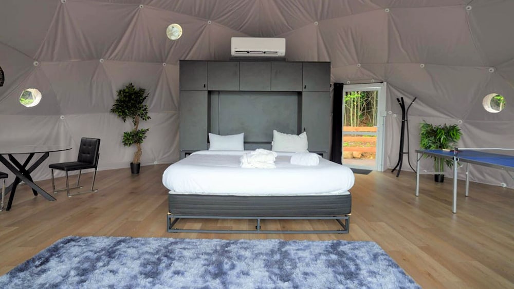 At the check in, they didn’t agree with the free breakfast advertised , had to argue. The roads are not easy to drive to the tent. Neiborrs left their dog alone in their tent and the dog barked all night .
