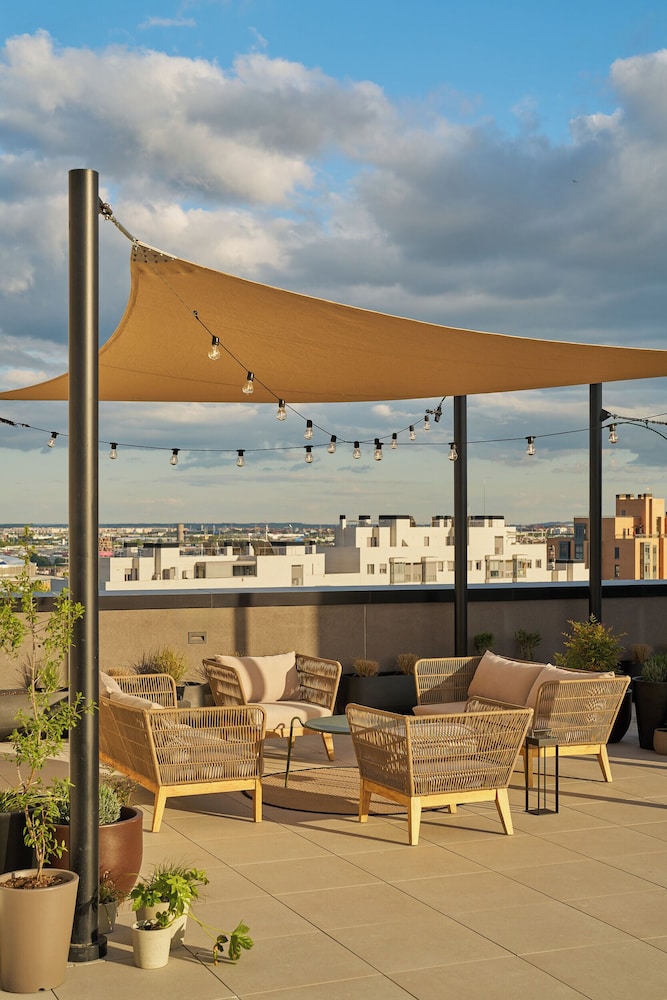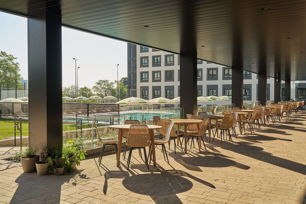 El hotel es ideal para todos, tiene au piscina, gym, y varias salas para descanso. Ademas de un aterraza grande fuera para loa fumadores.