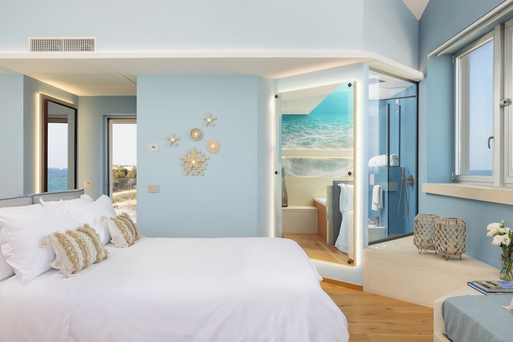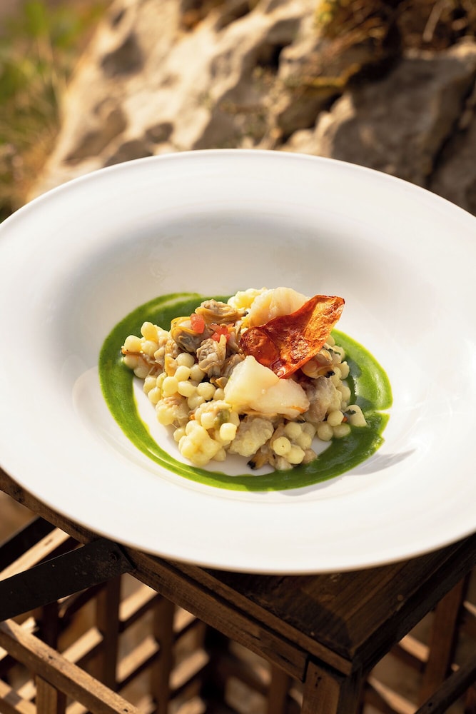 Hotel is beautiful, new and right on coast, pristine and clean and beautiful rooms with sea view. Staff were very helpful. However weather was bad when we were there and hotel isn’t ideal for wind and rain! Also restaurant while beautiful was quiet and very bright which we found off putting so we drove to another cosier place - though there isn’t much in the area. So perfect for a romantic trip if you are happy just to stay at the hotel. Grazie!
