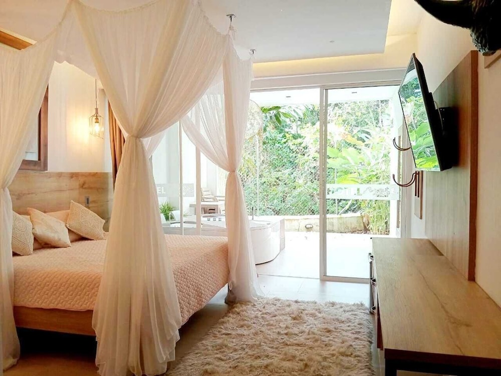 Unwind in one of our 26 air-conditioned rooms featuring private hot tubs and balconies or patios, providing a serene environment to relax and recharge.