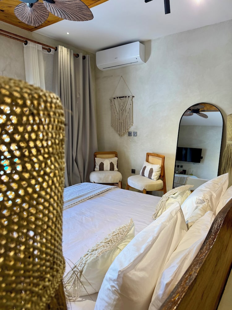 We stayed here for 3 nights during our trip around the island. The hotel is decorated really well and is very aesthetic which gives a good Zanzibar vibe. Nungwi beach is only a 5 minute walk BUT we personally preferred Kendwa beach but this is a 15 minute taxi trip. Rooms are clean and modern with great interior deco. All the staff were friendly and very helpful especially Nusra, she was amazing. We did have few minor issues during our stay but management was quick to resolve it. On our last day after we checked out, we headed out to the beach. The hotel stored our bags for us and when we returned from the beach to collect our suitcases they had a spare room which they let us use to shower and freshen up before heading to the airport which was very kind.