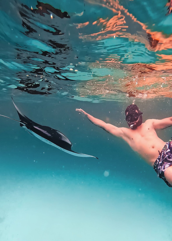 Relax on our serene private beach, perfect for sunbathing and unwinding. Take part in our exciting recreational amenities, like cooking classes and a refreshing outdoor pool, to make the most of your stay.