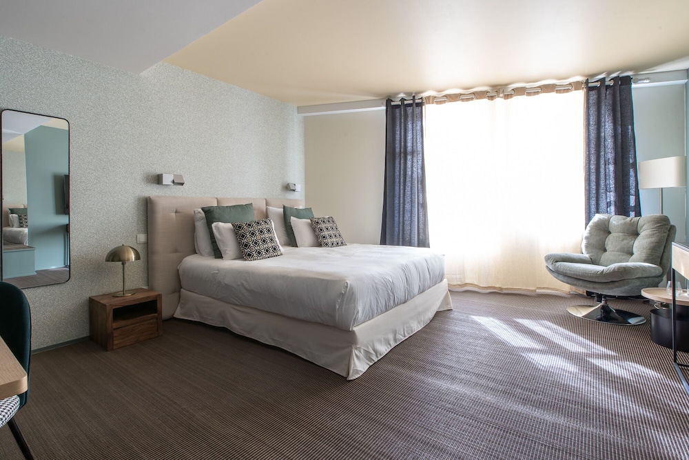På gjennomreise, så bare en natt i Beaune. Romslig og fint rom, meget komfortabel seng. Hyggelig betjening. Kort vei til sentrum, og enkel gateparkering like ved hotellet til en rimelig pris. Kan absolutt anbefales.
