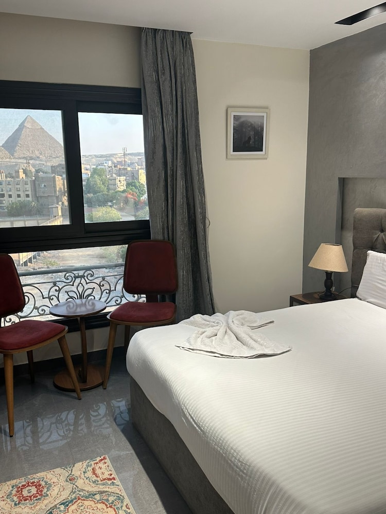 The property had an amazing view of the pyramids which i enjoyed evey morning while having breakfast in the roof restaurant. The concierge omar was incredible attentive seyting up grrat guides in cairo like professor Mohmoud and mr Hesham. He also set up trip to luxor from flights to activities, drivers and a great guide in mr Emad. Heva arrange a driver for my entire time in cairo Mohamed was excellent always early, super polite and good navegator in the madness of cairo traffic and colorful style of driving. Mr. Omar always kept in touch to make sure tours were going well and i was enjoying myself. He was super attentive from me booking my stay to me reaching my destination after leaving cairo.( Man doesn't sleep always available no matter the time.) front desk yousef and Aya super polite always welcoming. All in all very appreciative on the experien all this lovely people gave me it was a lifelong dream of mine to visit Egypt and they made it unforgettable.