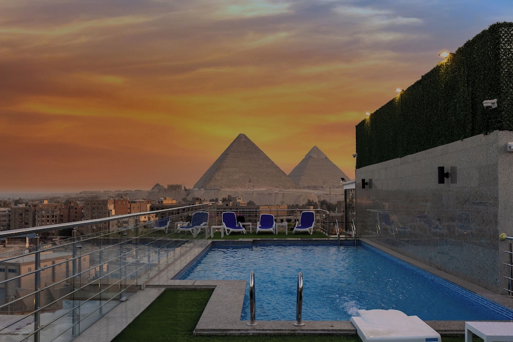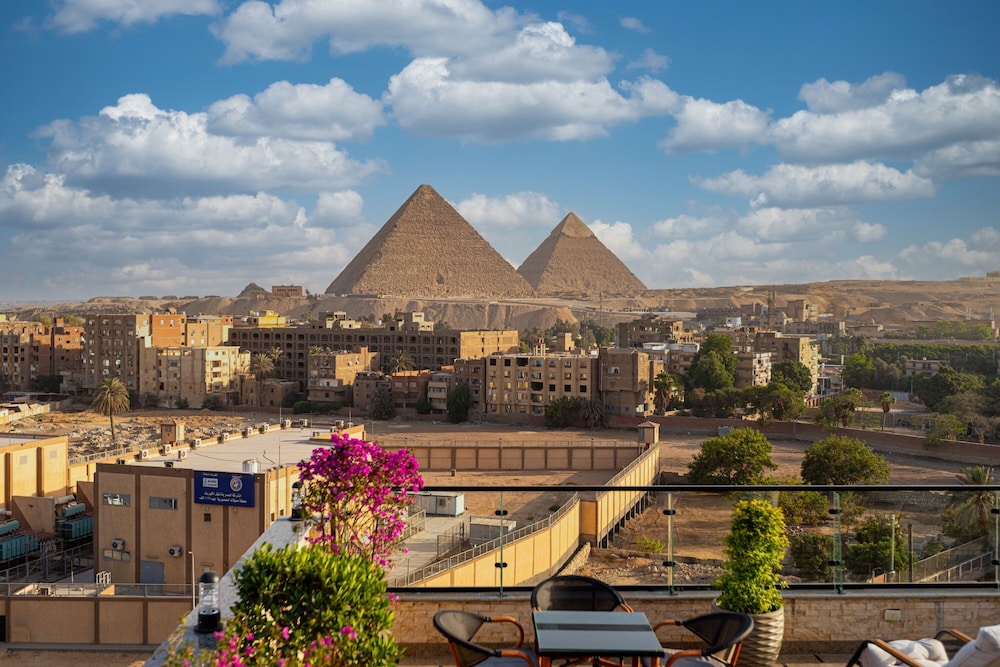 Hotel con veduta sulle piramidi davvero suggestiva, davvero bella la terrazza con piscina, bar e ristorante. Il personale è davvero gentile. Omar è stato davvero attento a tutte le nostre esigenze. consigliato.