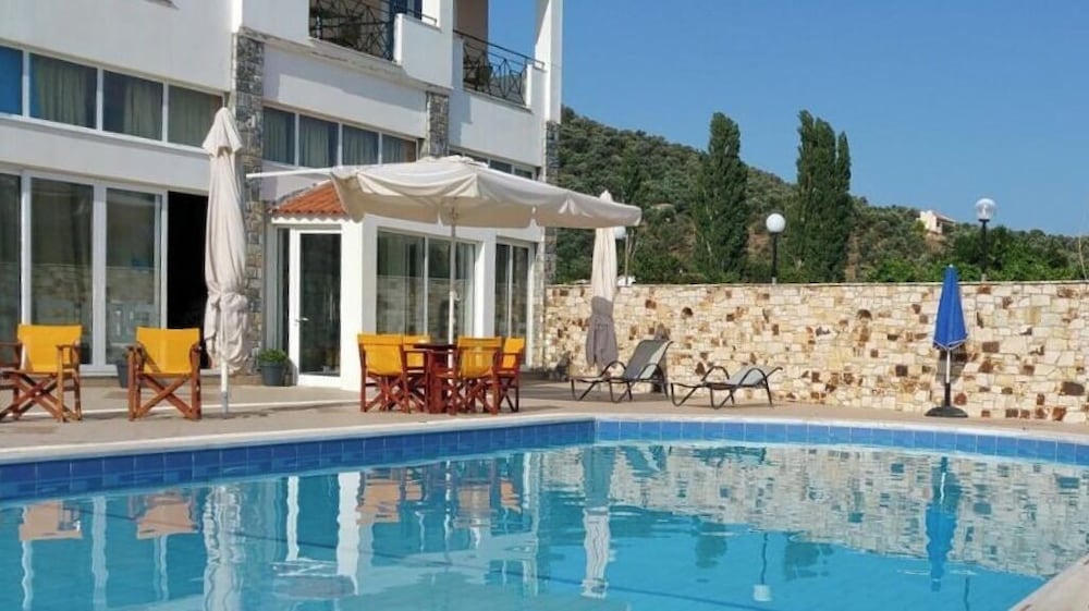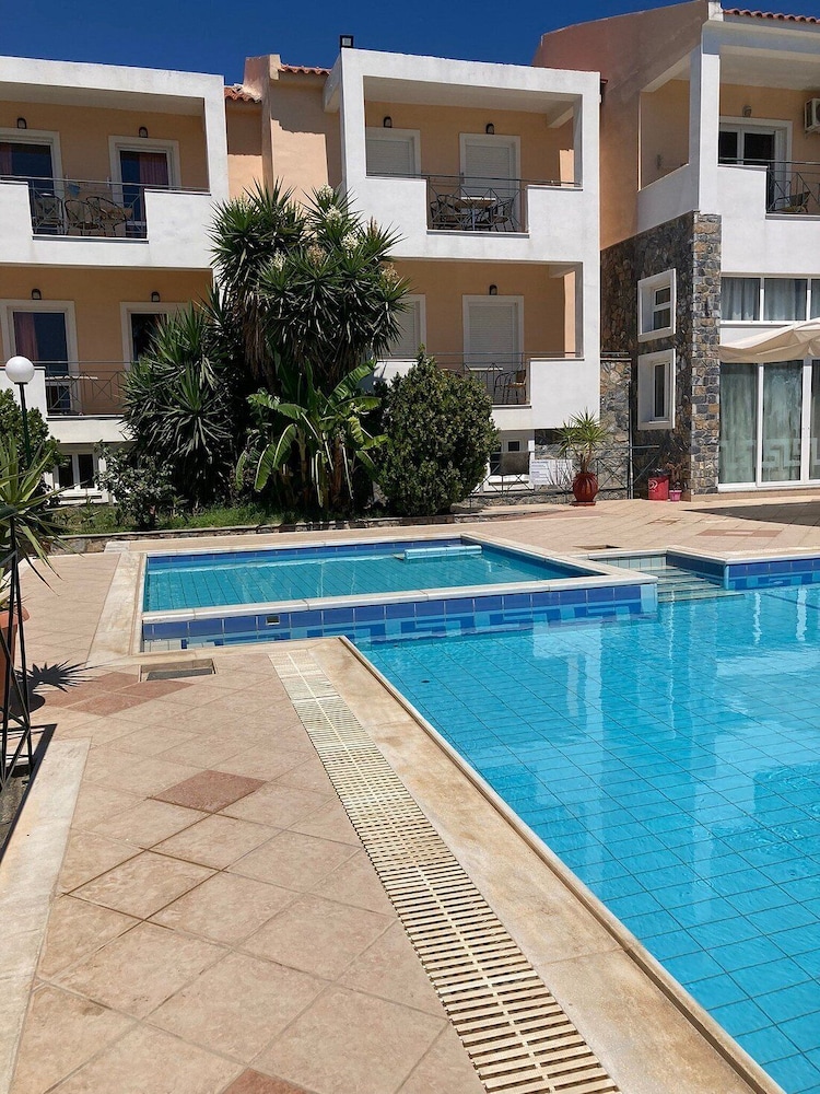 Kahvaltı oldukça zengindi, restoran da temizdi. Çalışanlar çok güleryüzlü ve yardımseverdi. Bilhassa Maria ve ailesi çok iyiler. Havuza girmedik, zamanımızı pırıl pırıl denizi olan plajda geçirdik. Otelin ücretsiz şezlong ve şemsiye hizmeti var.