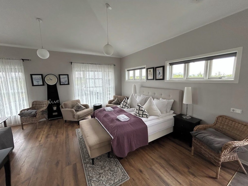 The room was pristine, area is quiet and isolated. Great value for a spacious room. Only issue were the gnats, which can be a problem all over Iceland, just need bug spray outside.