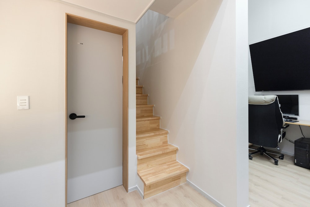 予約人数が違うと言われ20000ウォン追加で請求された。初日だけ清掃が入ったが、以降は全くなし。トイレットペーパーとタオルが溜まって大変